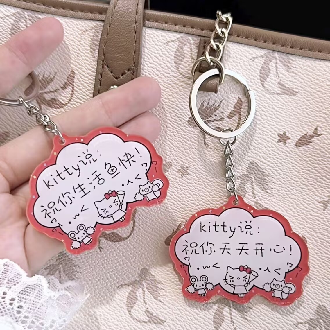 키티 고양이는 당신의 삶을 빌어줍니다. 물고기 키체인 아크릴 고가치 선물 배낭 귀여운 틈새 펜던트스토어 가기