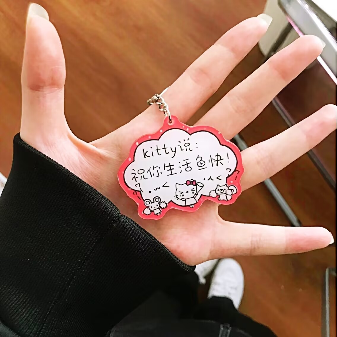 키티 고양이는 당신의 삶을 빌어줍니다. 물고기 키체인 아크릴 고가치 선물 배낭 귀여운 틈새 펜던트