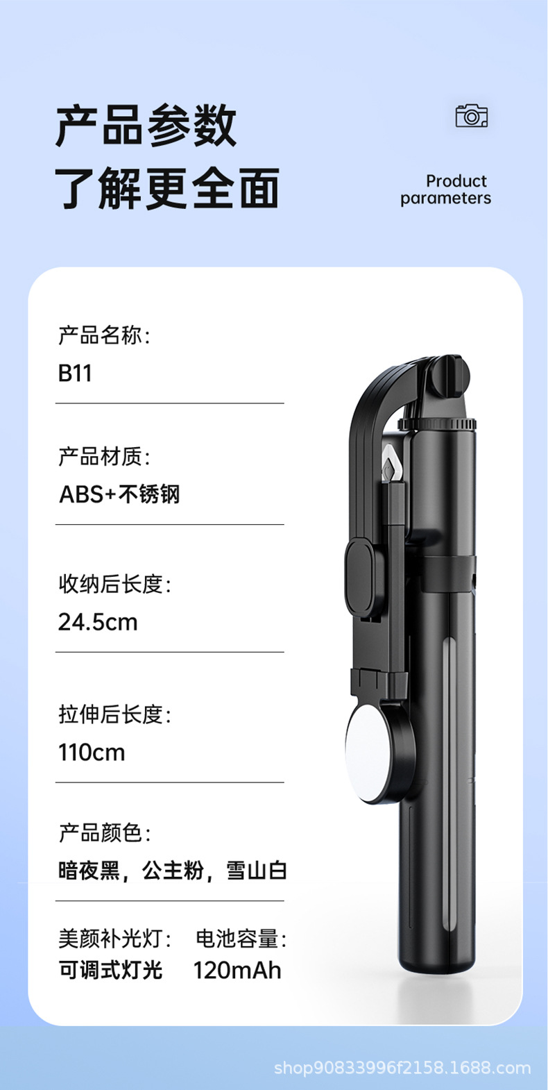국경 간 인기 휴대 전화 셀카 스틱 B11s 다기능 올인원 블루투스 원격 제어 라이브 방송 야외 사진 촬영 범용