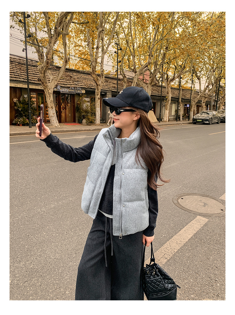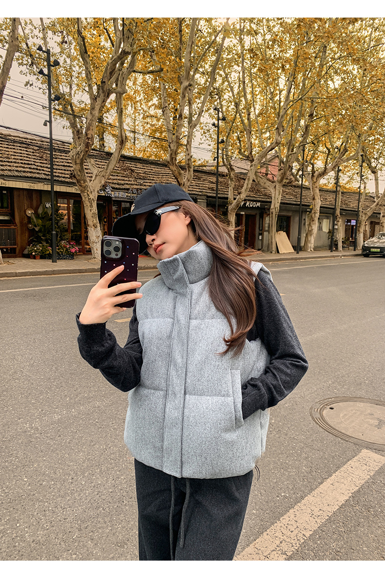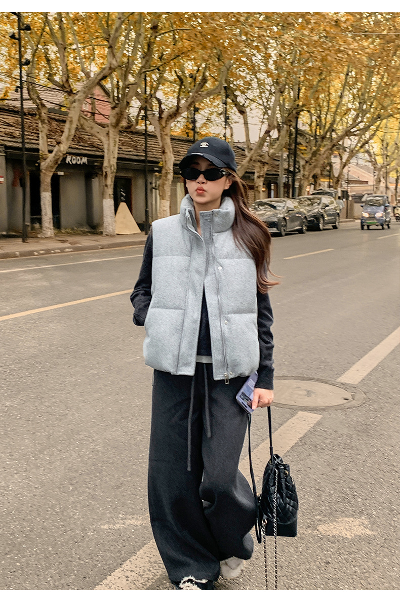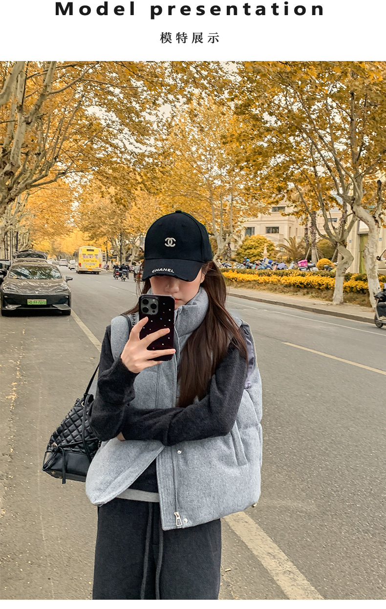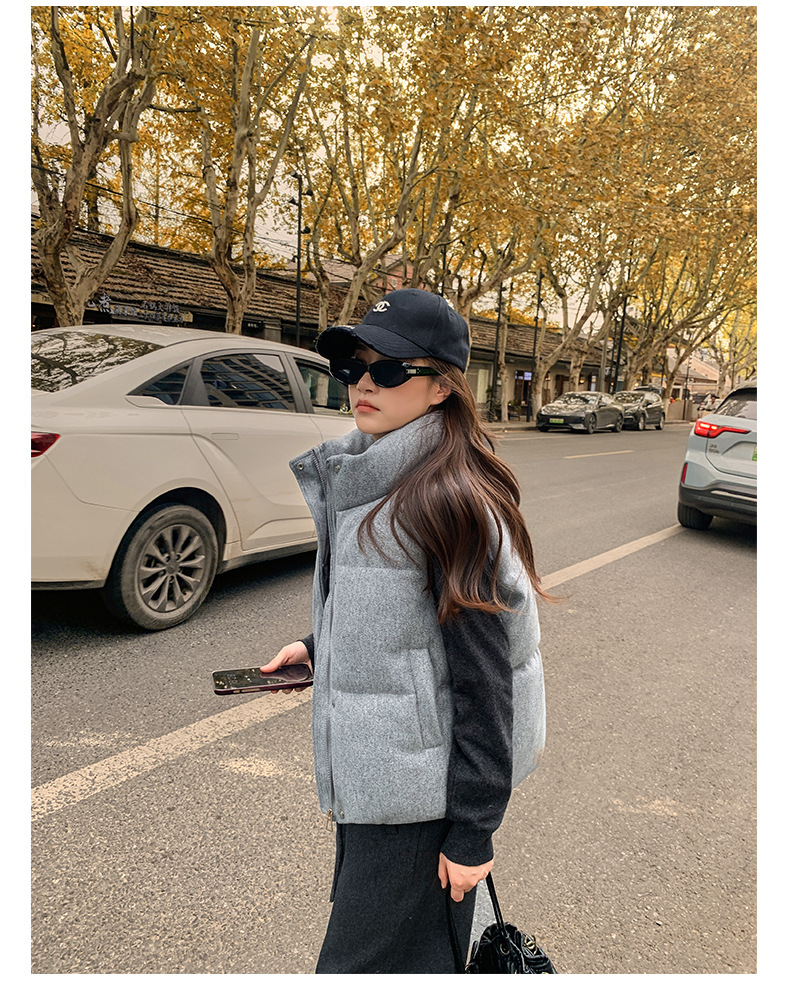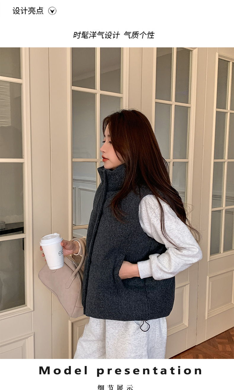 2025 새로운 가을, 겨울 회색 모직 하이 엔드 슬림 두꺼운 다운 코튼 자켓 여성 조끼 패션 아우터 조끼스토어 가기