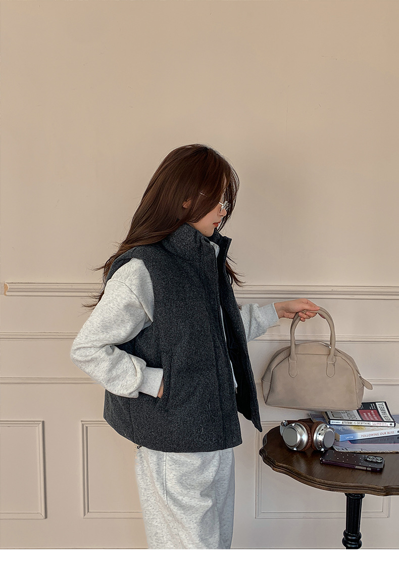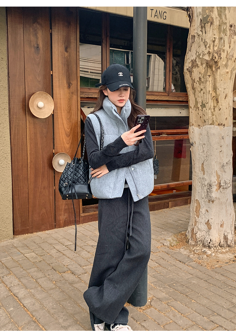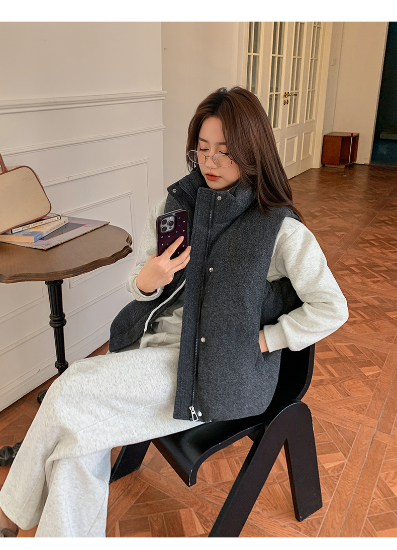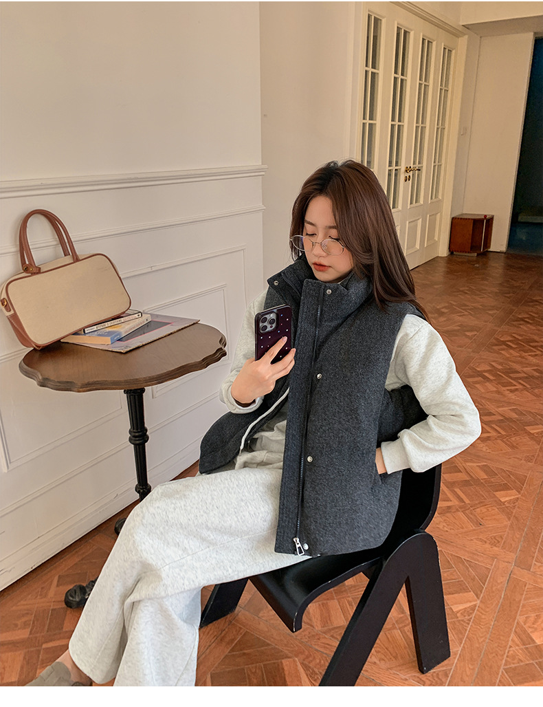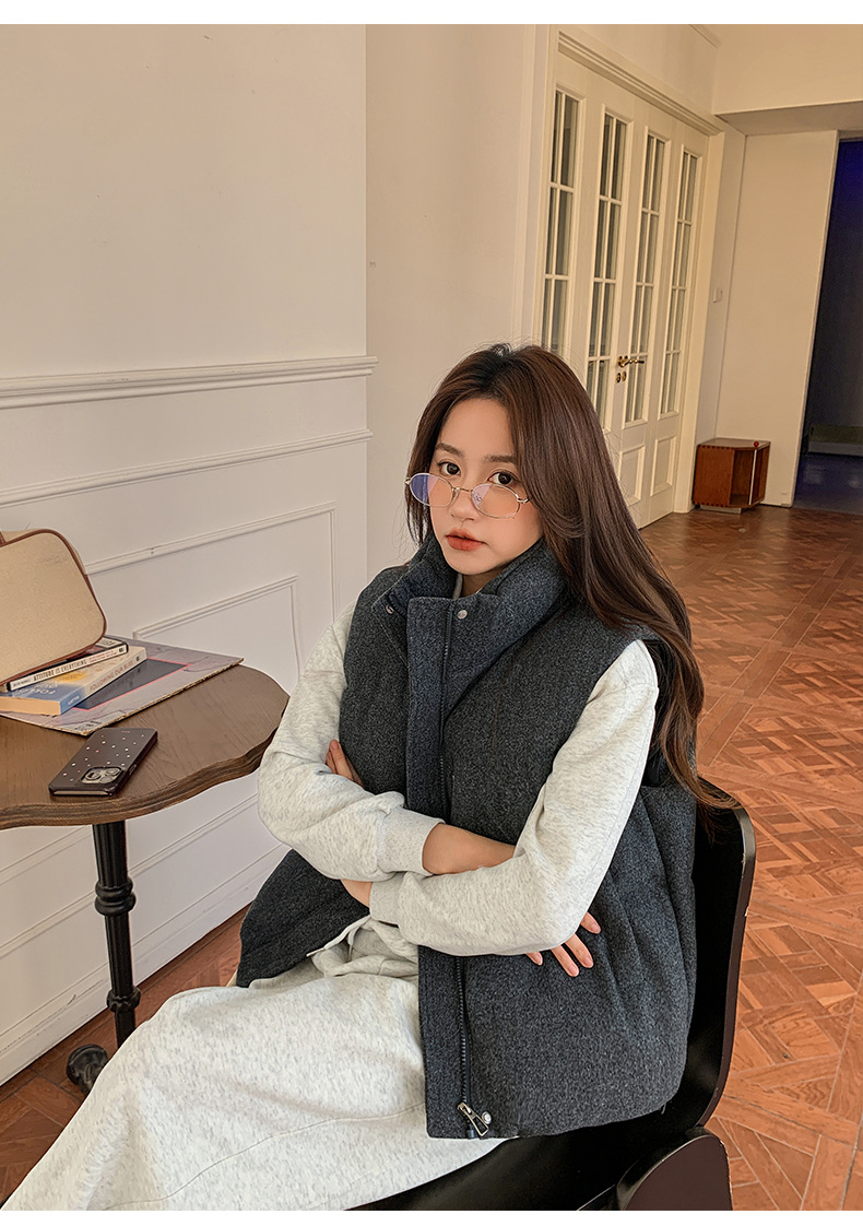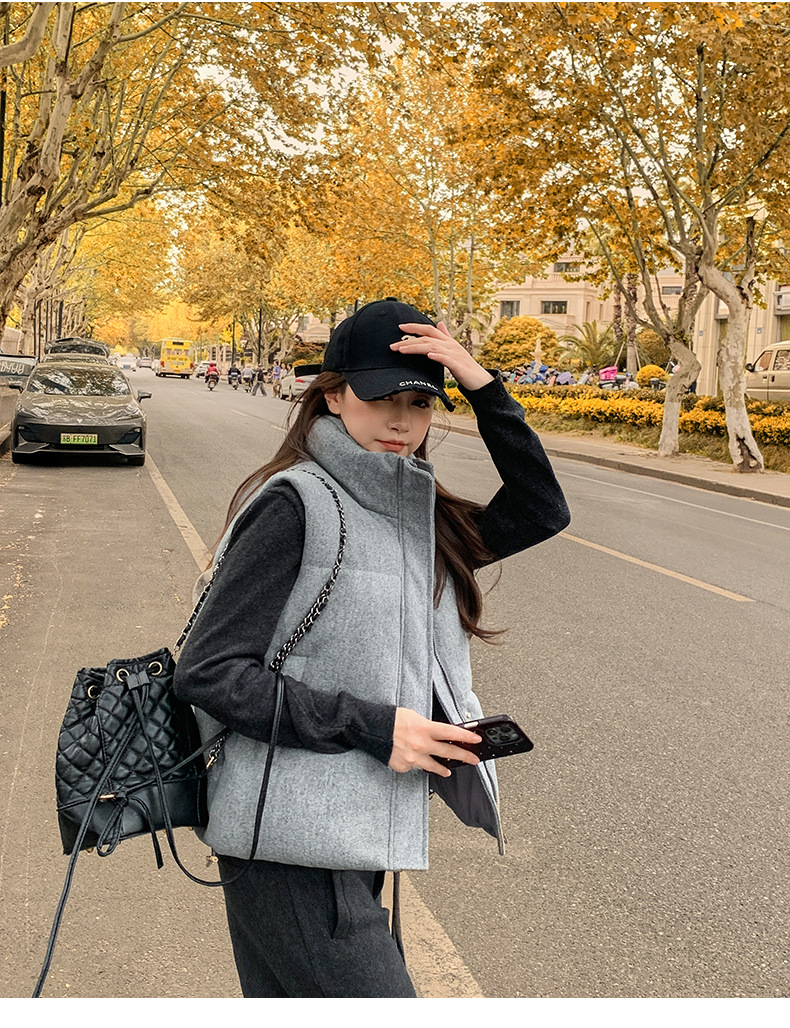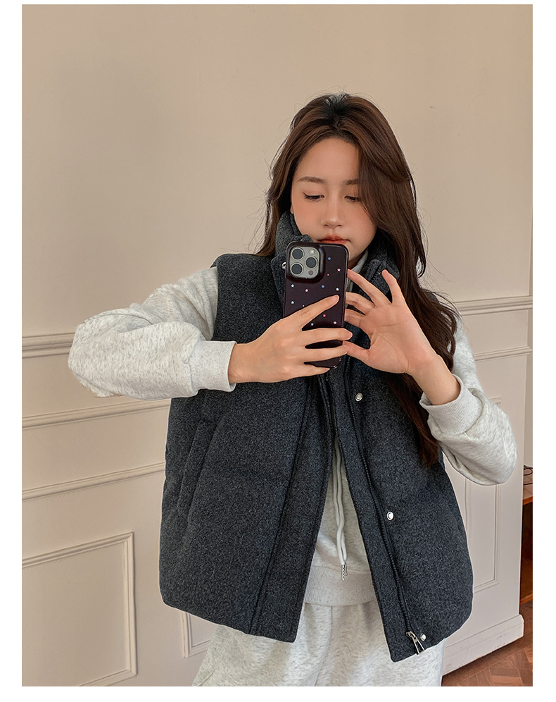 2025 새로운 가을, 겨울 회색 모직 하이 엔드 슬림 두꺼운 다운 코튼 자켓 여성 조끼 패션 아우터 조끼스토어 가기