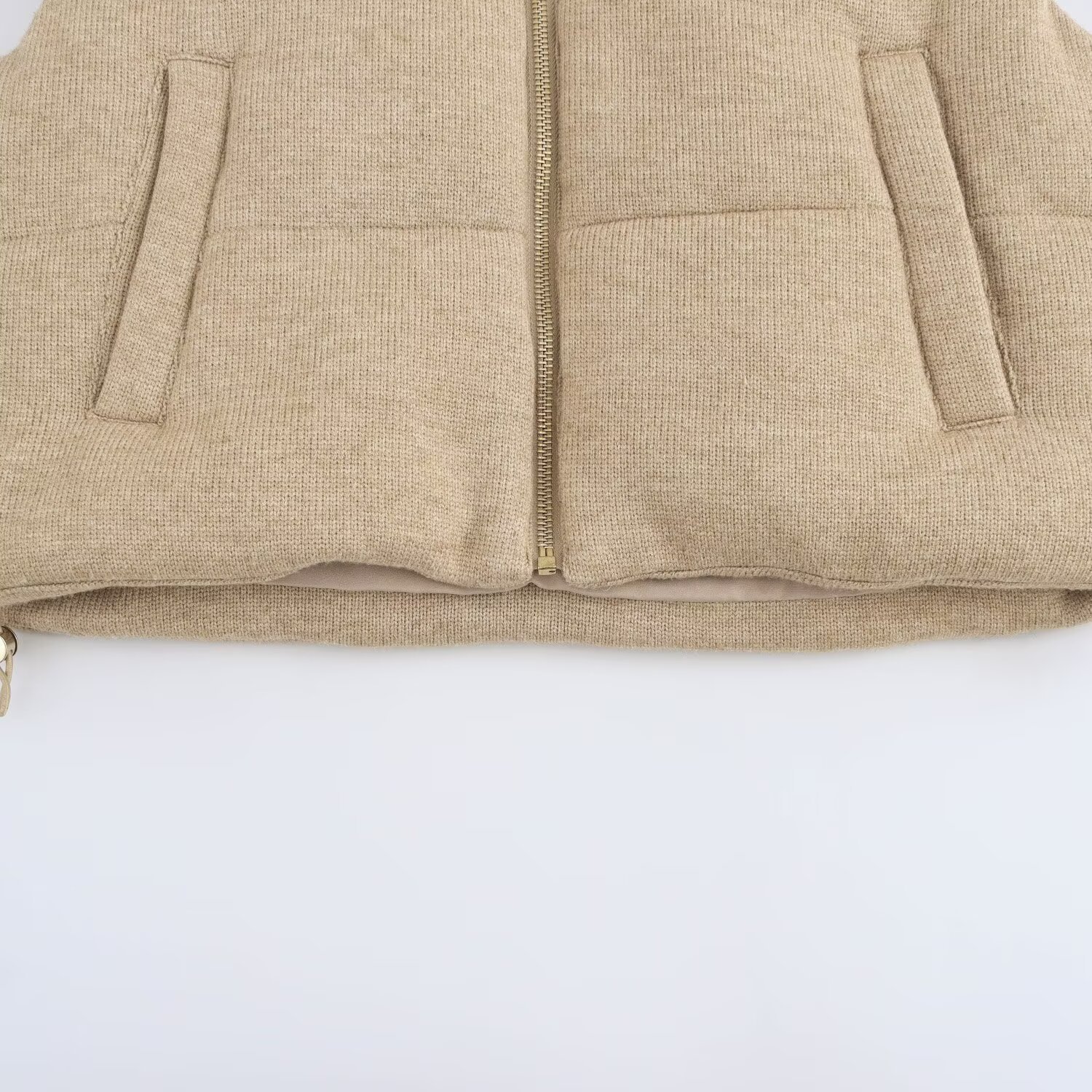 ZA 국경 간 여성 의류 도매 유럽과 미국 스타일의 가을, 겨울 새로운 스탠드 업 칼라 지퍼 니트 코튼 조끼 6318221스토어 가기