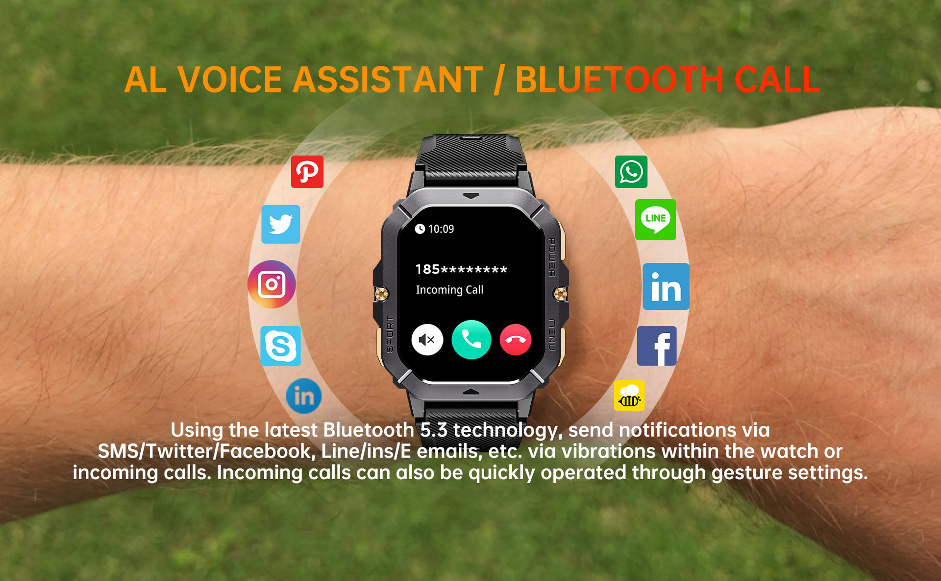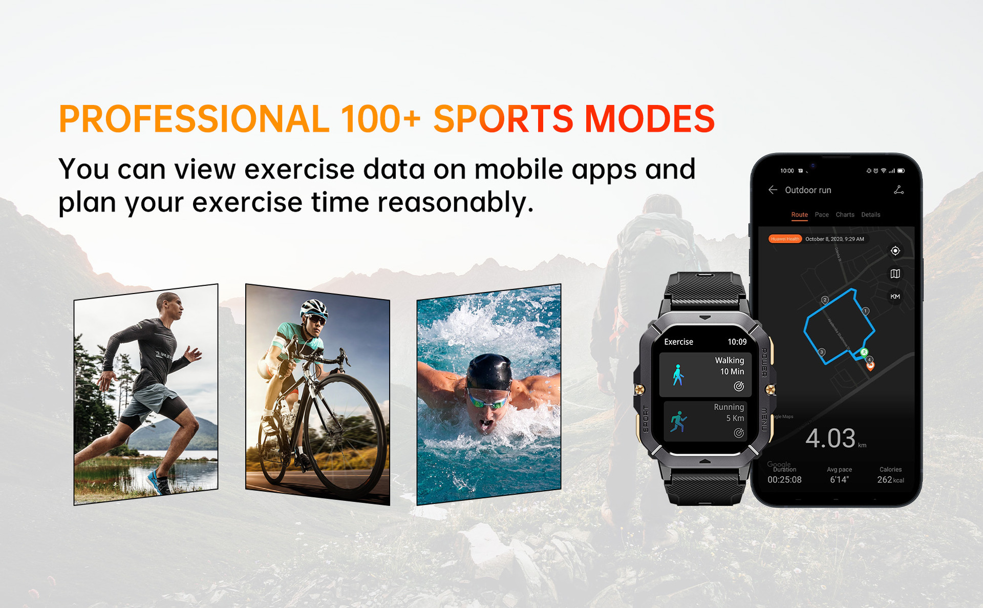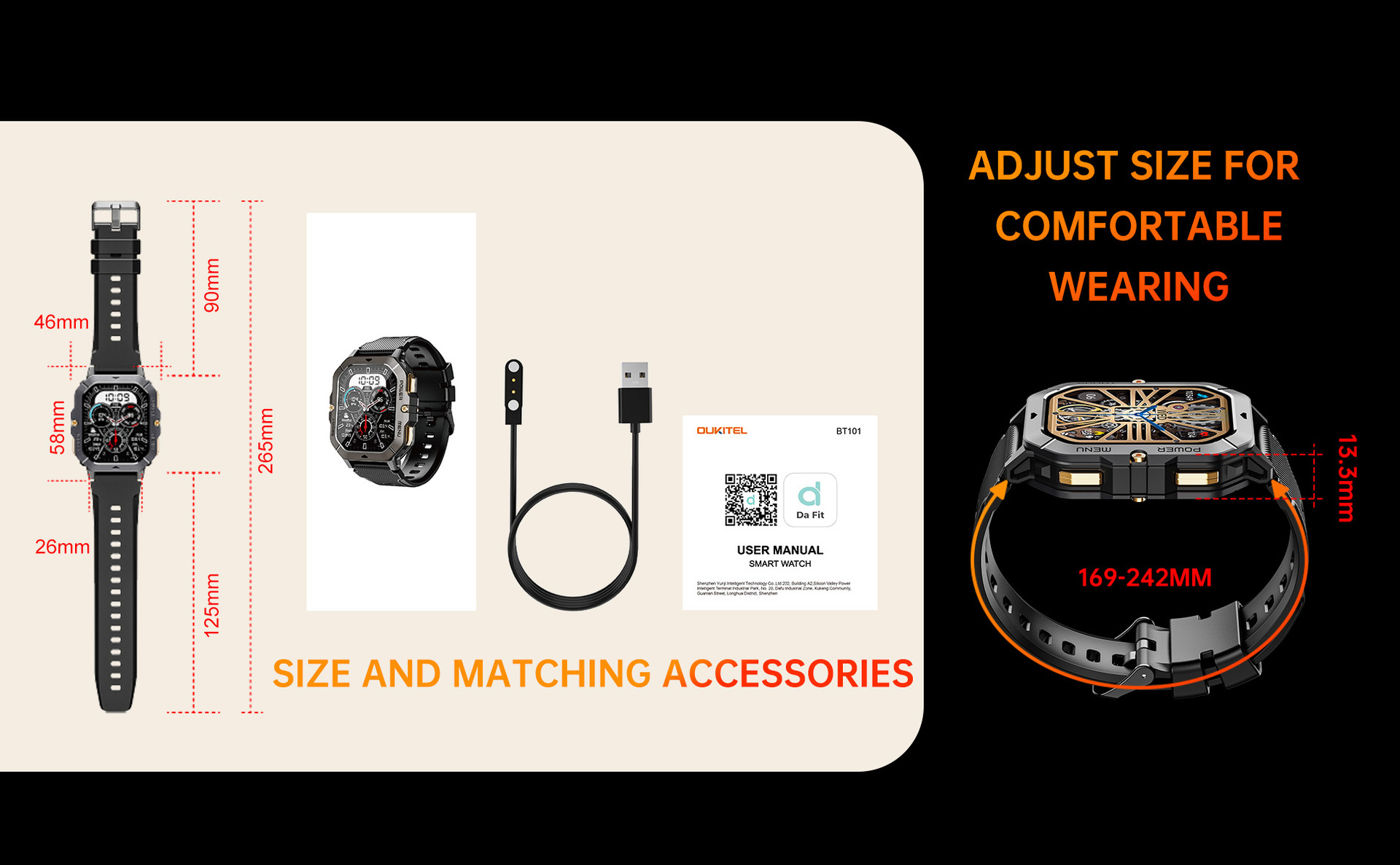 OUQI BT101 2.02inch 스포츠 스마트 시계 410mAh BLE5.3 홍콩 배송