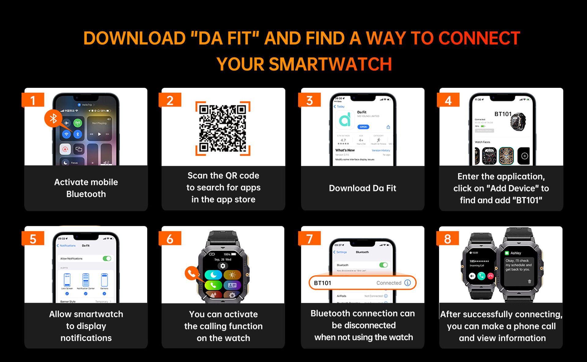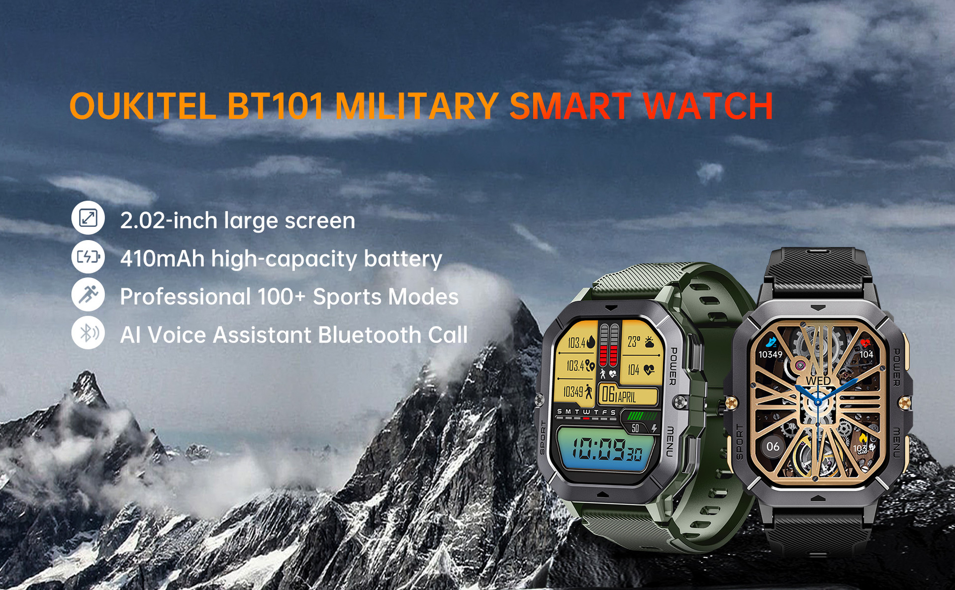 OUQI BT101 2.02inch 스포츠 스마트 시계 410mAh BLE5.3 홍콩 배송스토어 가기