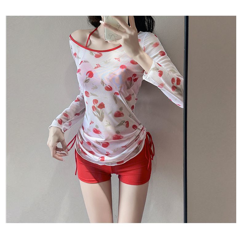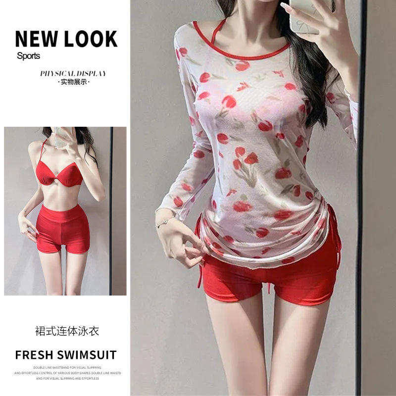 수영복 여성 스플릿 3 피스 세트 보수적 인 자외선 차단제 긴팔 바디 쉐이핑 휴가 새로운 스타일 2025 소녀 수영복스토어 가기