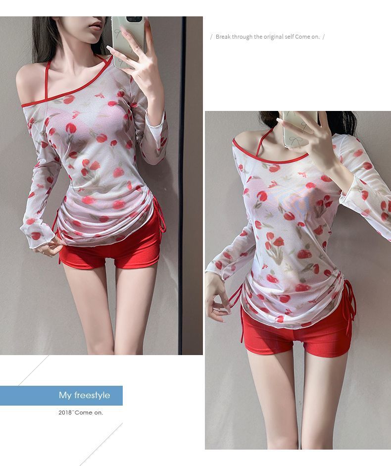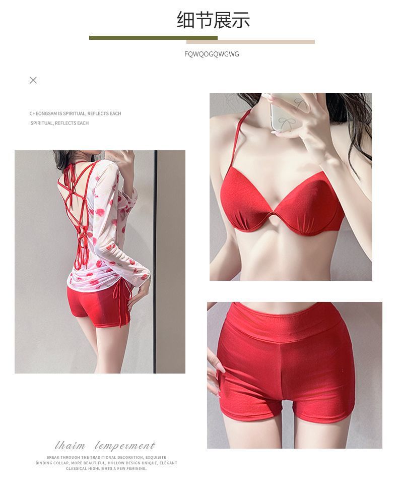 수영복 여성 스플릿 3 피스 세트 보수적 인 자외선 차단제 긴팔 바디 쉐이핑 휴가 새로운 스타일 2025 소녀 수영복