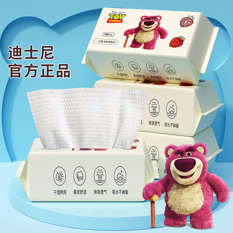 딸기곰 클렌징 타월 일회용 세안 타월 걸이형 대형 두꺼운 피부 친화적 면 부드러운 타월 도매 얼굴 닦는 타월