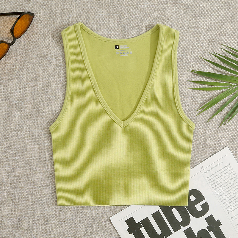 기본 다용도 유럽 및 미국 스레드 V 넥 단층 조끼 나일론 스포츠 요가 속건성 피트니스 섹시한 브라 하이