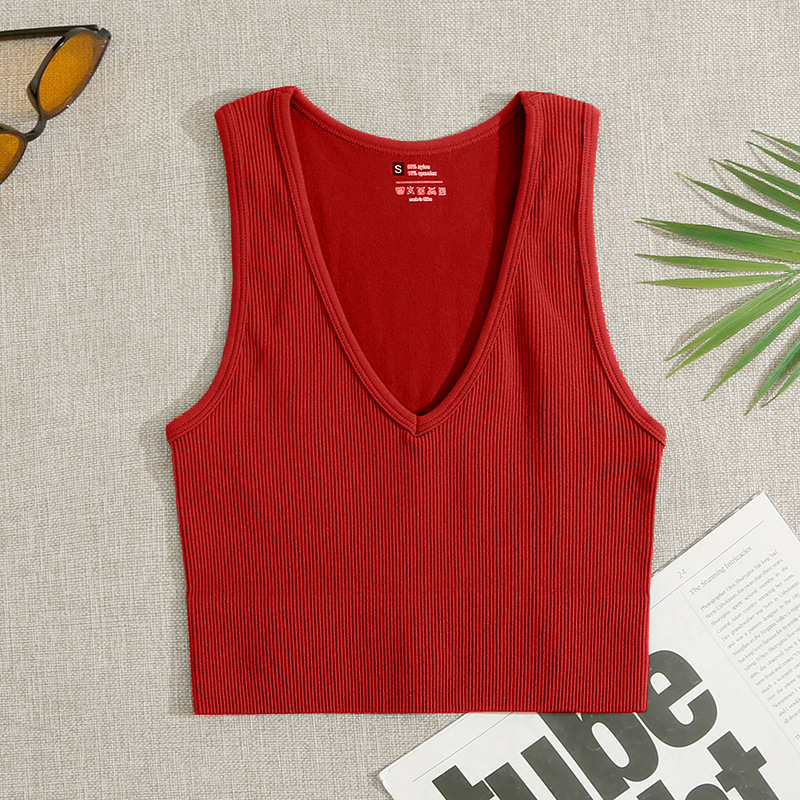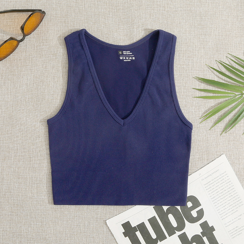 기본 다용도 유럽 및 미국 스레드 V 넥 단층 조끼 나일론 스포츠 요가 속건성 피트니스 섹시한 브라 하이스토어 가기