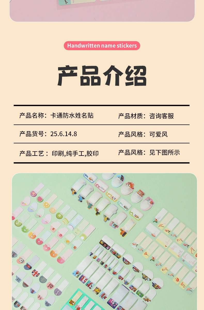 만화 방수 이름 스티커 필기 물컵 이름 태그 스티커 어린이 빈 마크 멋진 귀여운 스티커