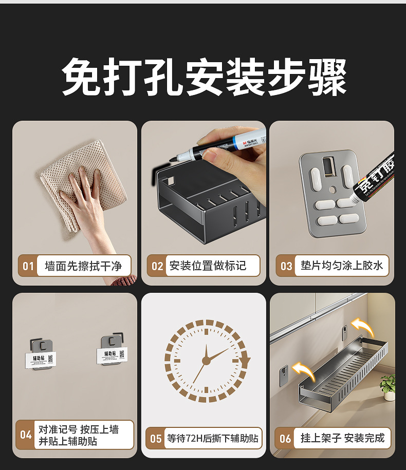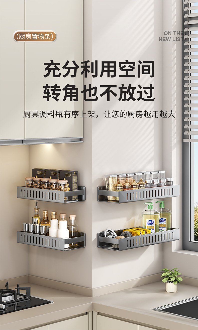 공장에서 펀치 없는 주방 수납 선반, 주방 벽걸이 양념 선반, 양념 벽 수납 선반, 양념 선반을 공급합니다.스토어 가기