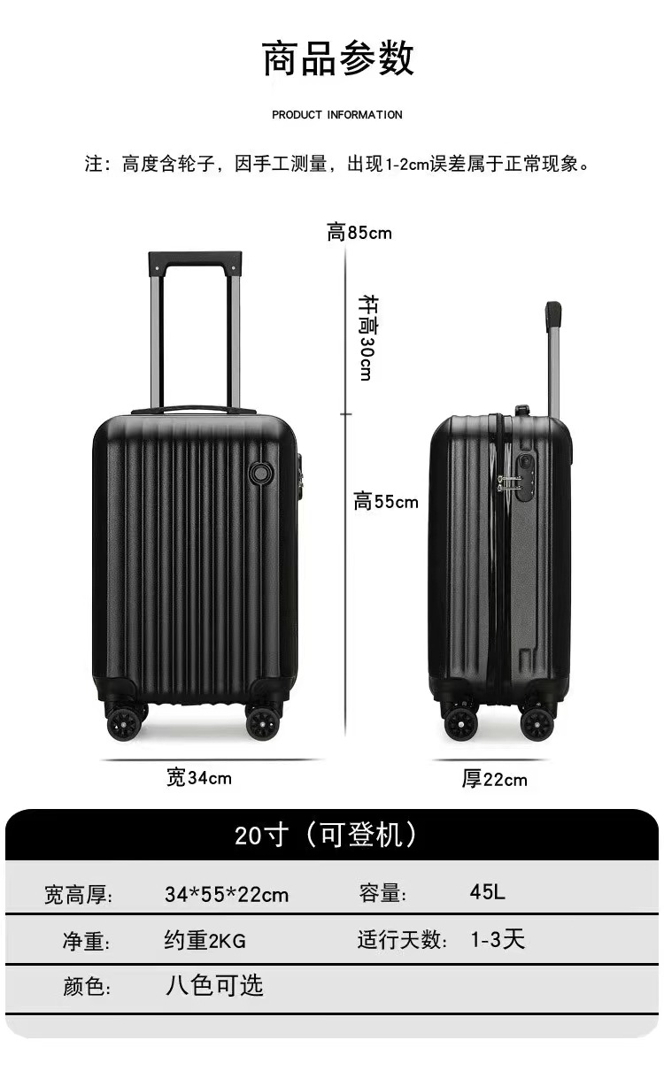 국경 간 새로운 20inch 성인 트롤리 케이스 솔리드 컬러 대용량 범용 휠 수하물 코드 잠금 탑승 케이스 도매스토어 가기