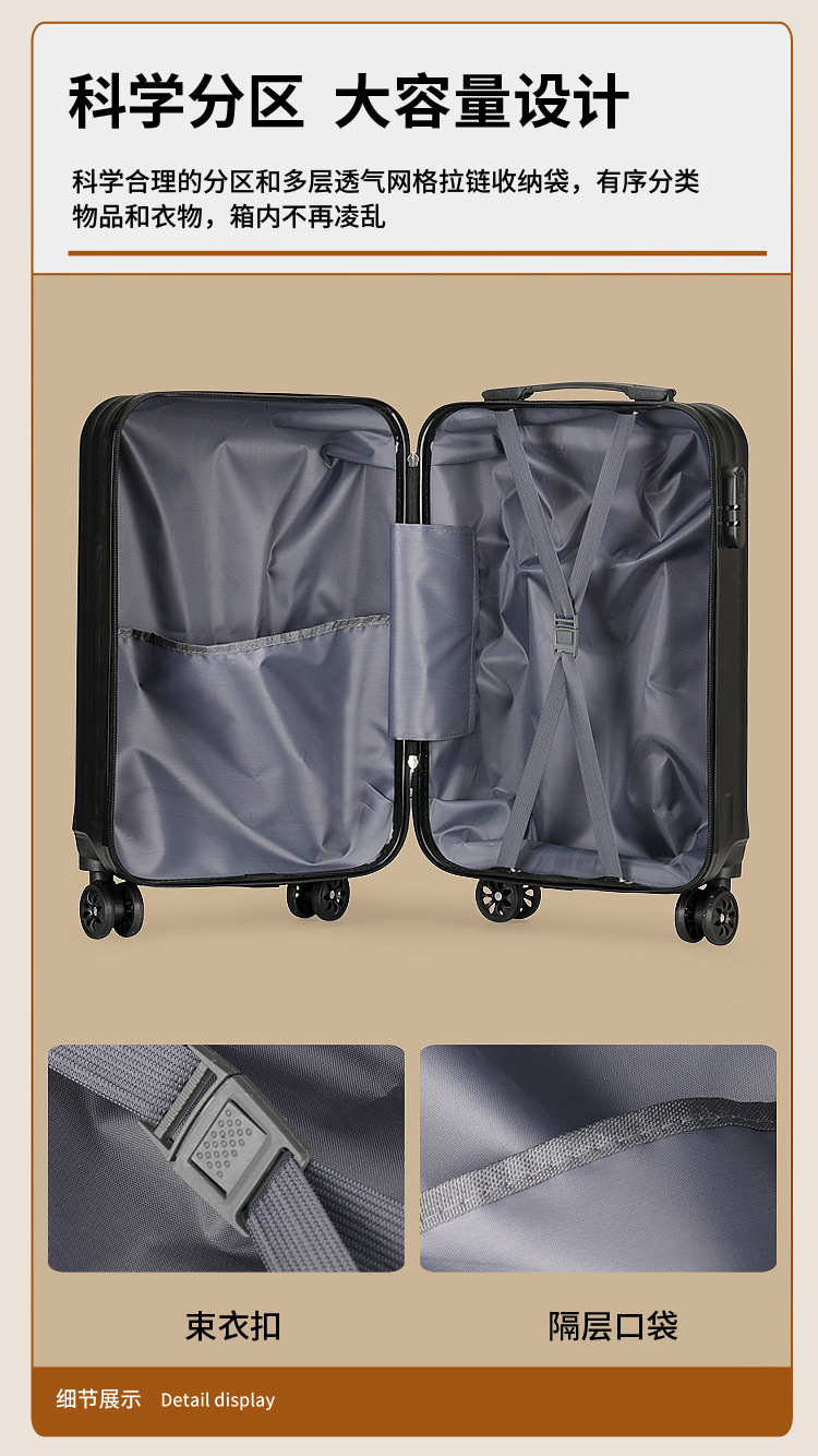 국경 간 새로운 20inch 성인 트롤리 케이스 솔리드 컬러 대용량 범용 휠 수하물 코드 잠금 탑승 케이스 도매