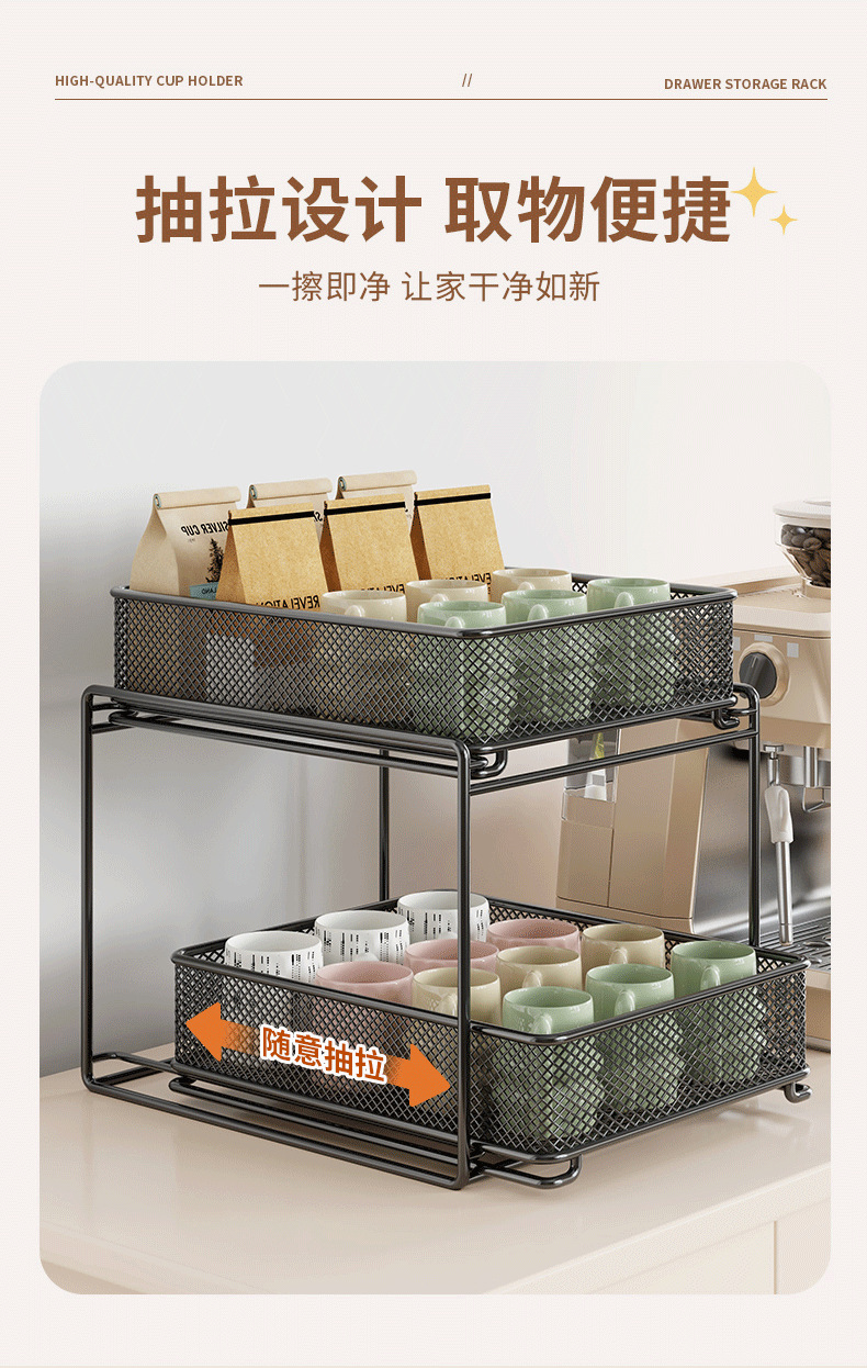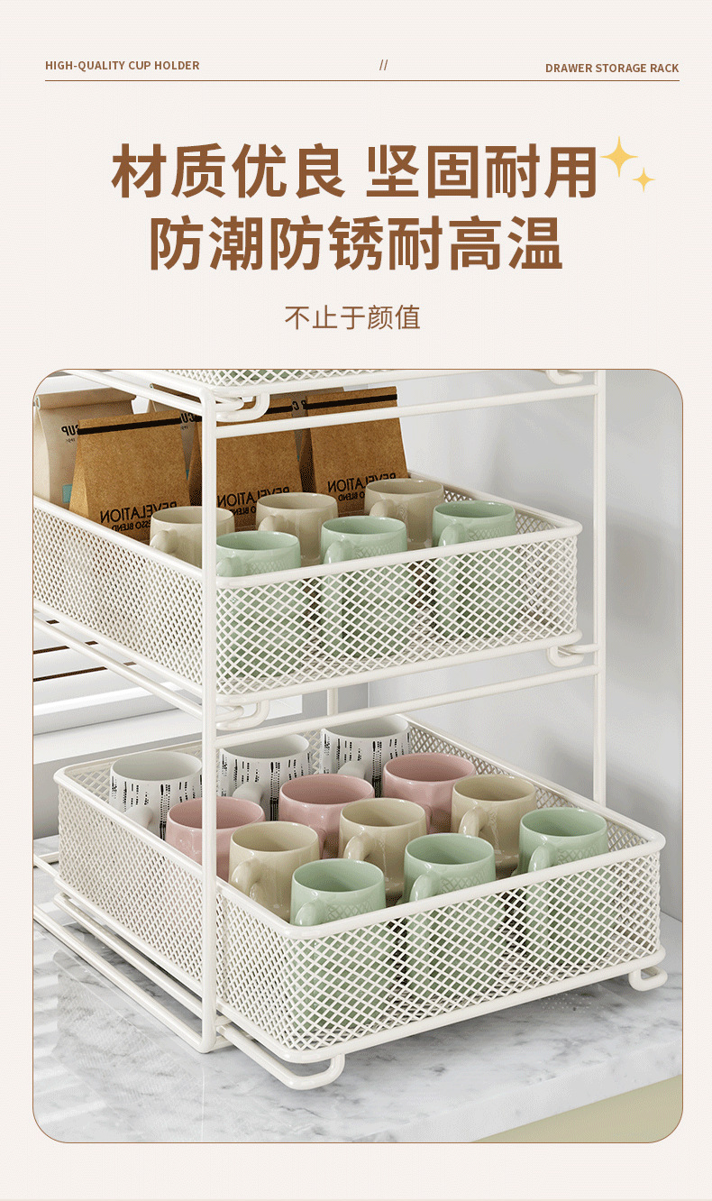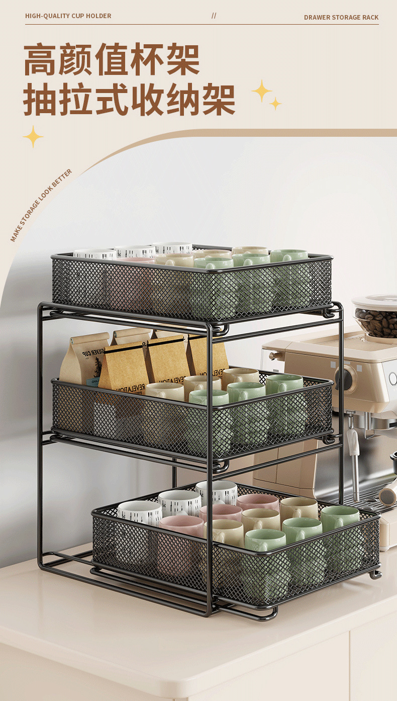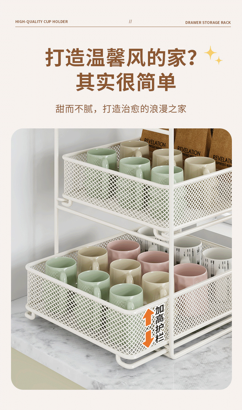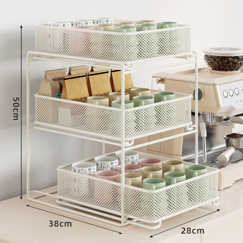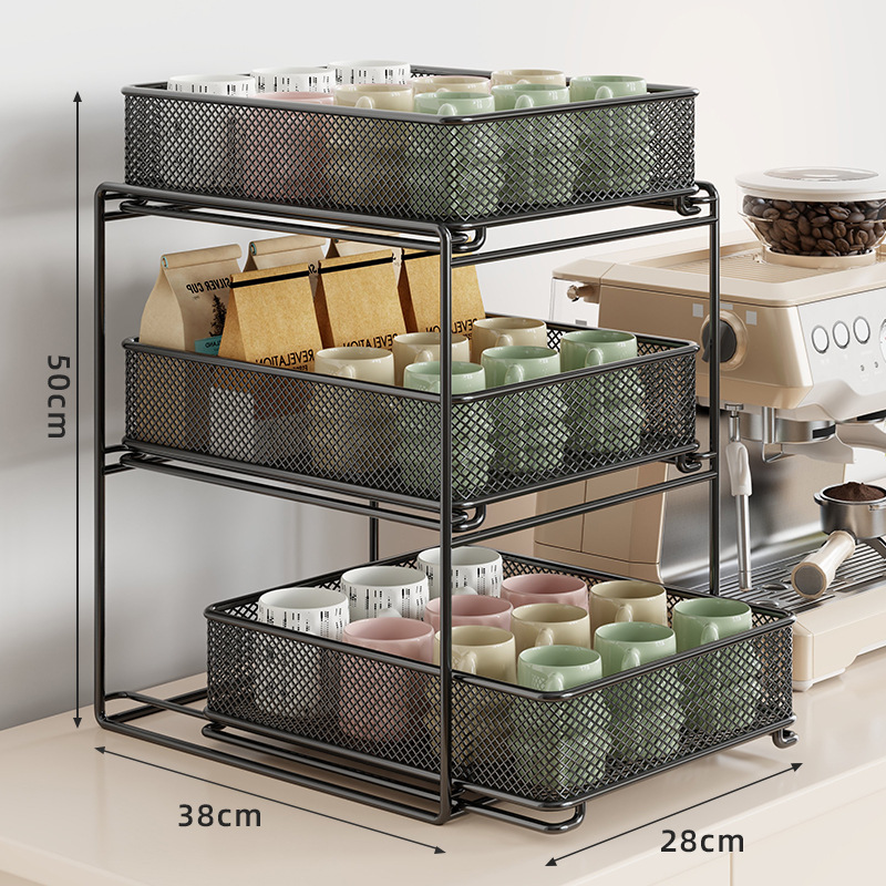 컵 홀더 보관 랙 데스크탑 유리 컵 커피 티 컵 주방 테이블 더블 레이어 배수구 풀 아웃스토어 가기