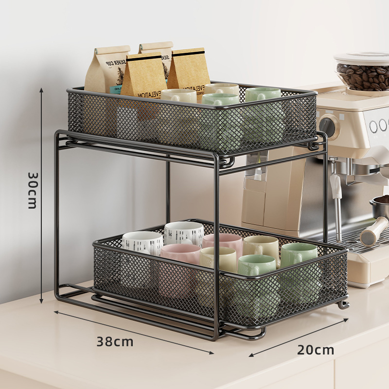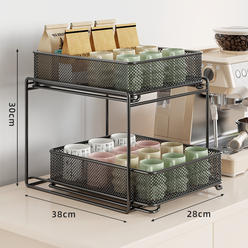컵 홀더 보관 랙 데스크탑 유리 컵 커피 티 컵 주방 테이블 더블 레이어 배수구 풀 아웃