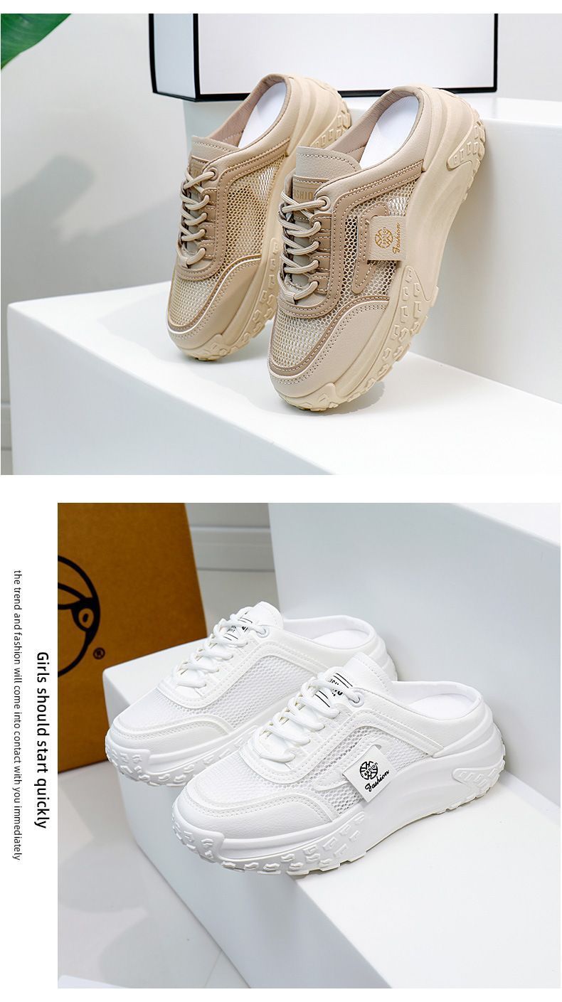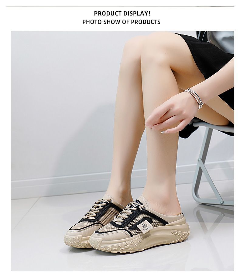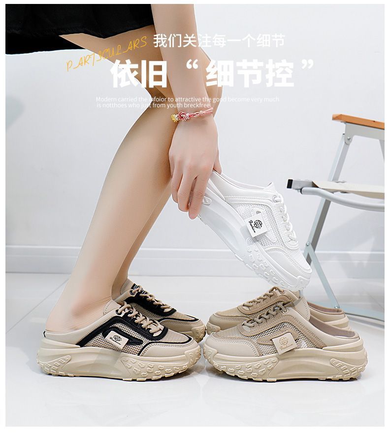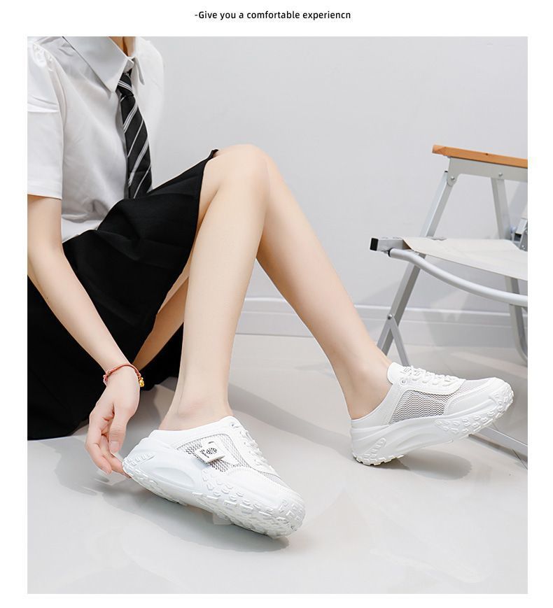 여성을위한 게으른 홈 바오 터우 샌들 2025 여성을위한 새로운 여름 겉옷 메쉬 통기성 경량 높이 증가 하프 슬리퍼스토어 가기