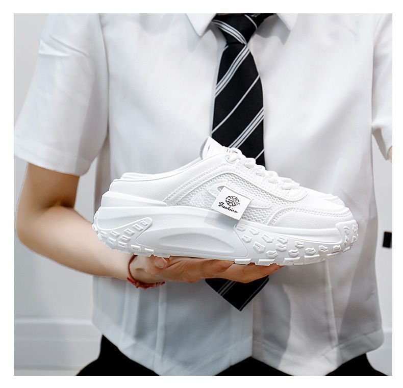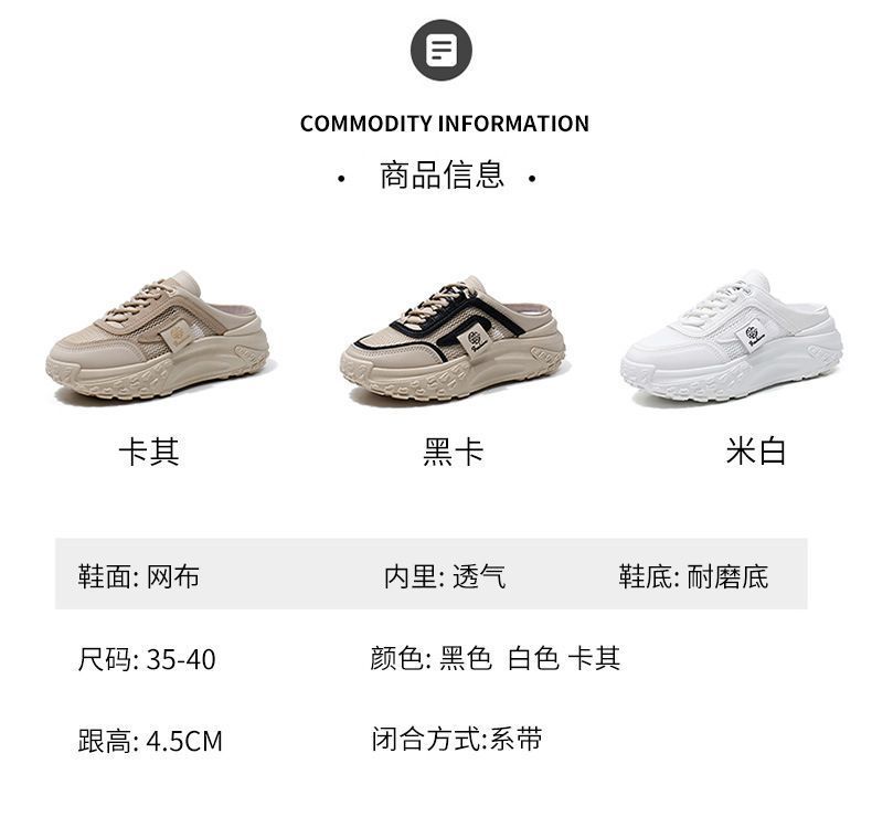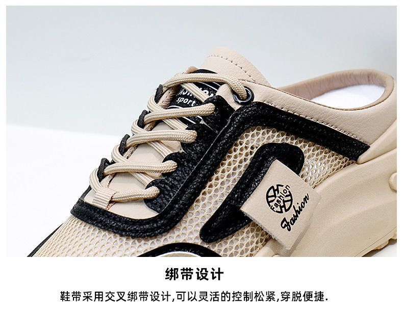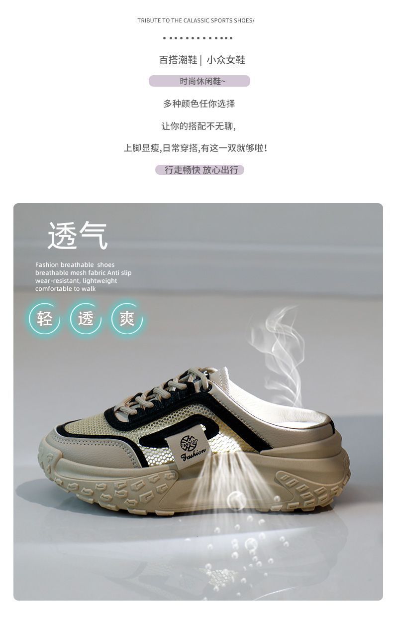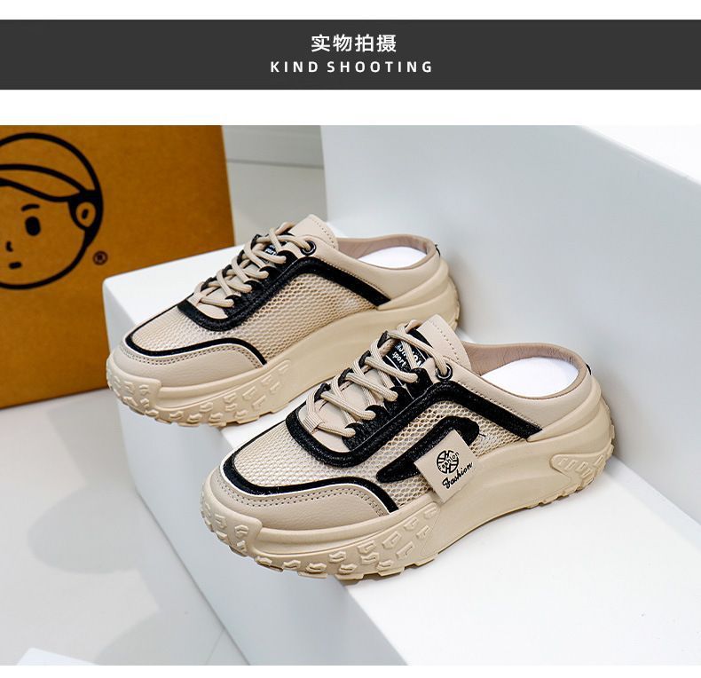 여성을위한 게으른 홈 바오 터우 샌들 2025 여성을위한 새로운 여름 겉옷 메쉬 통기성 경량 높이 증가 하프 슬리퍼스토어 가기