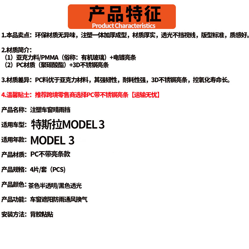테슬라 모델 3 차량용 윈도우 레인 가드, 개조형 아크릴 레인 바이저, 레인 쉴드, 방수판