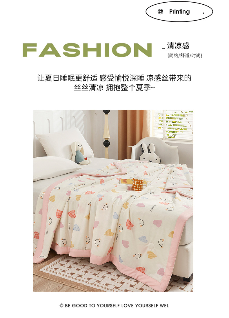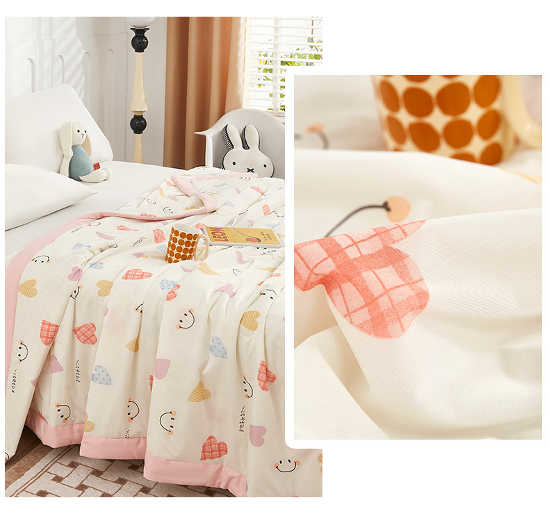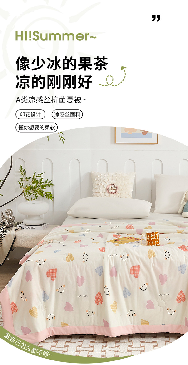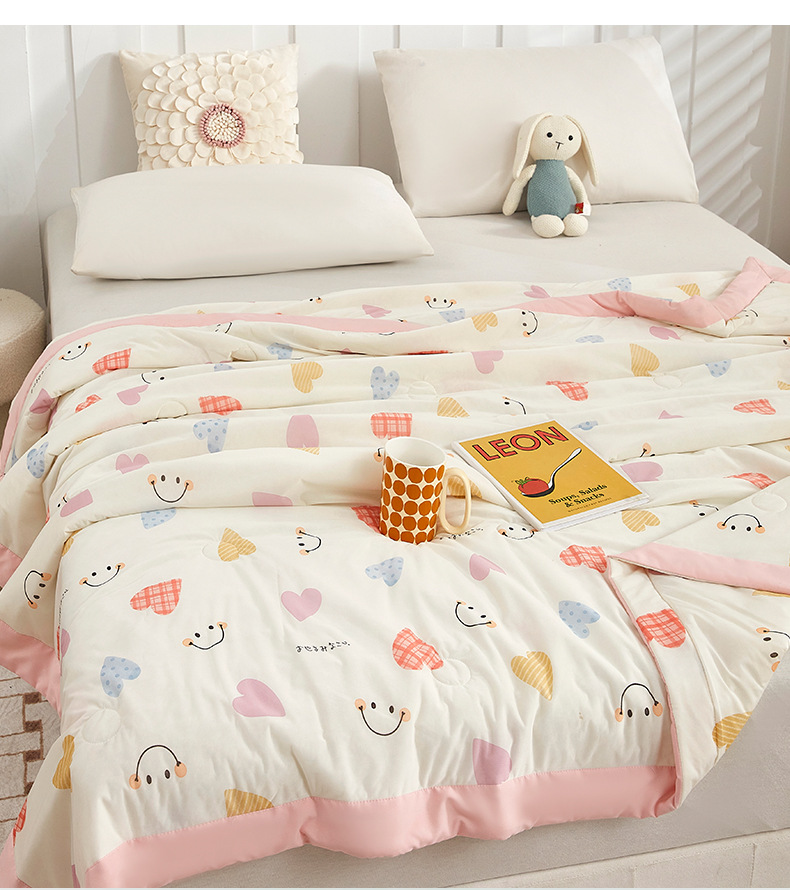 어린이 여름 이불 에어컨 이불 얼음 실크 여름 이불 유치원 아기 여름 시원한 느낌 얇은 이불 기계 세탁 가능 스마일 러브