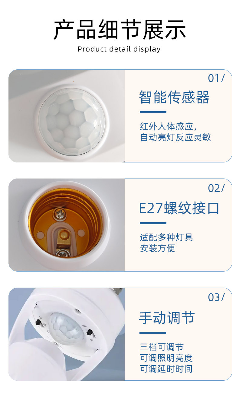 • 【인체 감지 변환 소켓 E27】3구/스위치 조절 가능