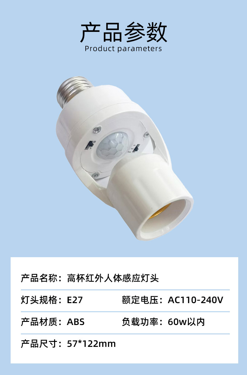 • 유형 86 E27 나사 인체 적외선 센서 램프 홀더