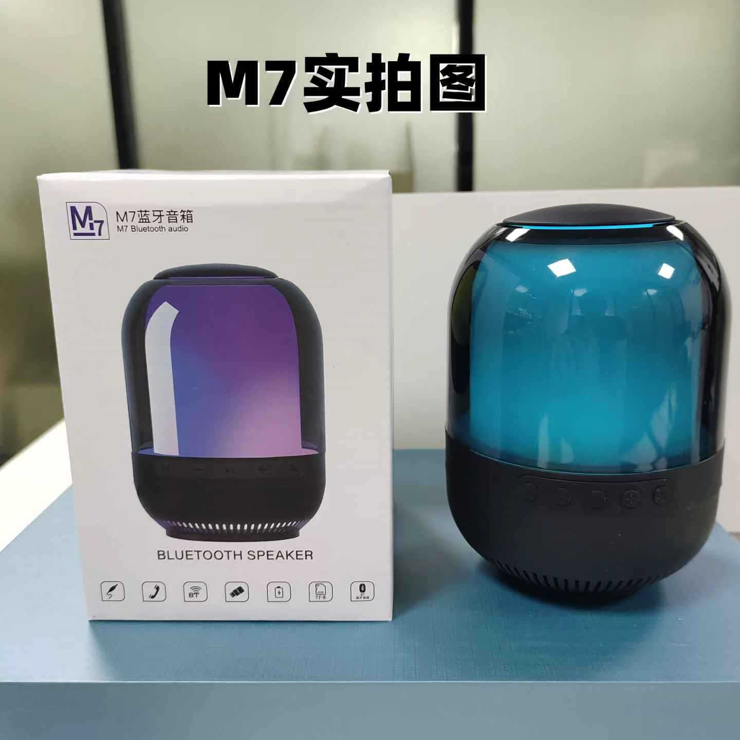 국경 간 새로운 고품질 M7 블루투스 스피커 서브 우퍼 주변 조명 컴퓨터 데스크탑 휴대용 유리 소형 스피커스토어 가기