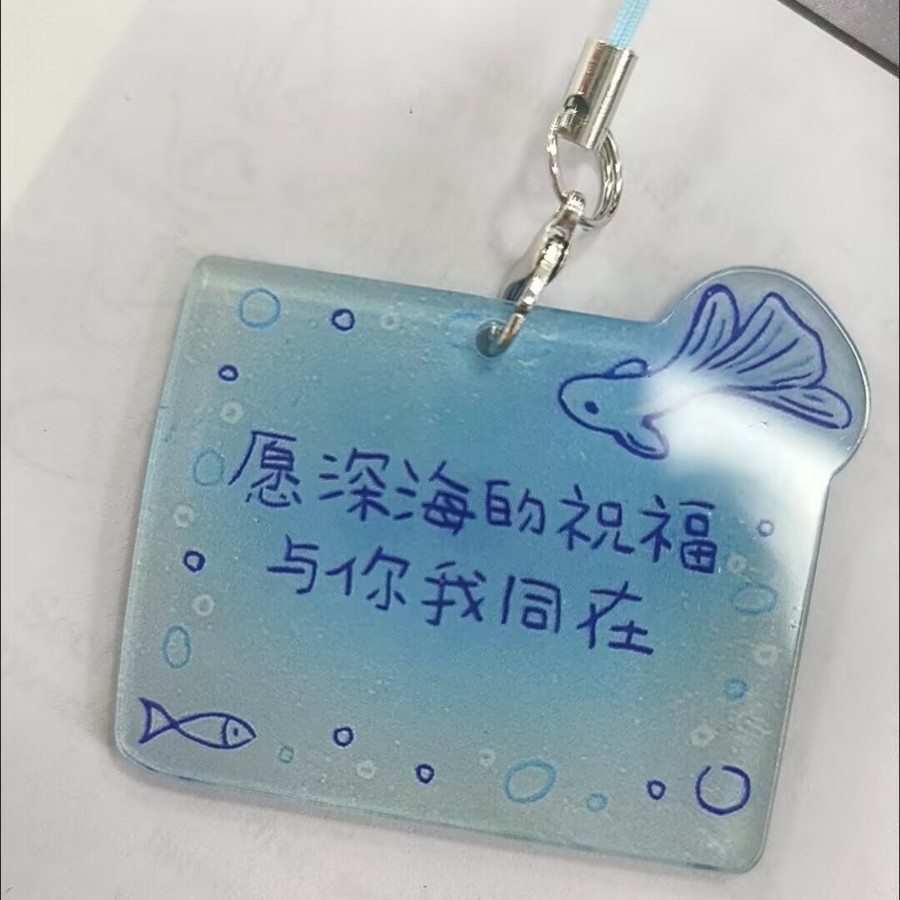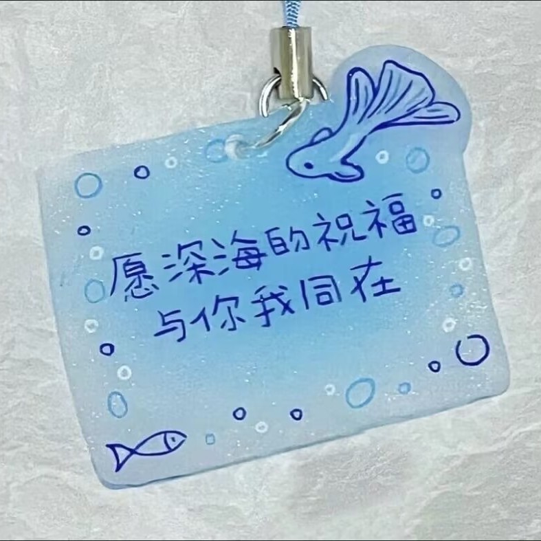 Qi Yu 축복 텍스트 펜던트 물고기 푸시 필수 배낭 펜던트 키 체인 펜던트 체인 아크릴 크리 에이 티브 펜던트 선물스토어 가기