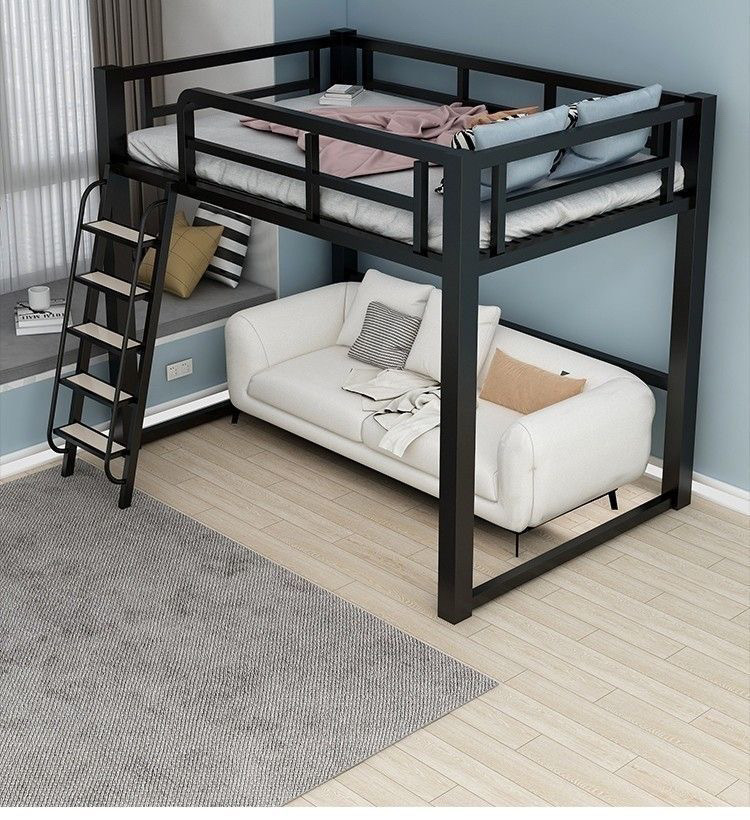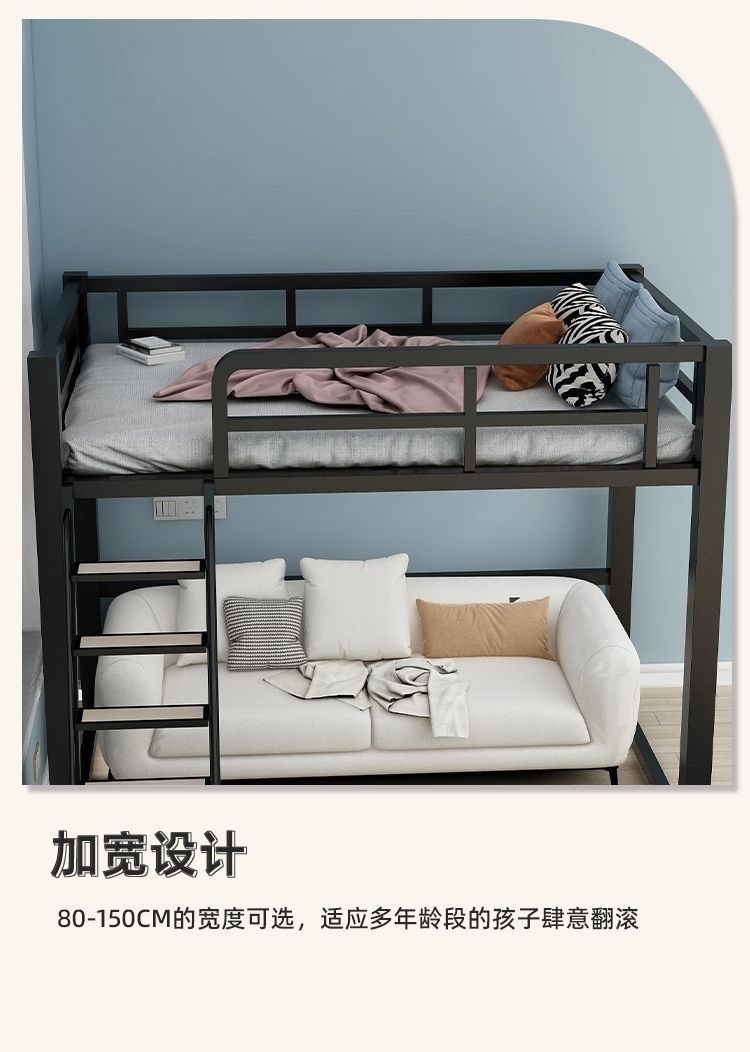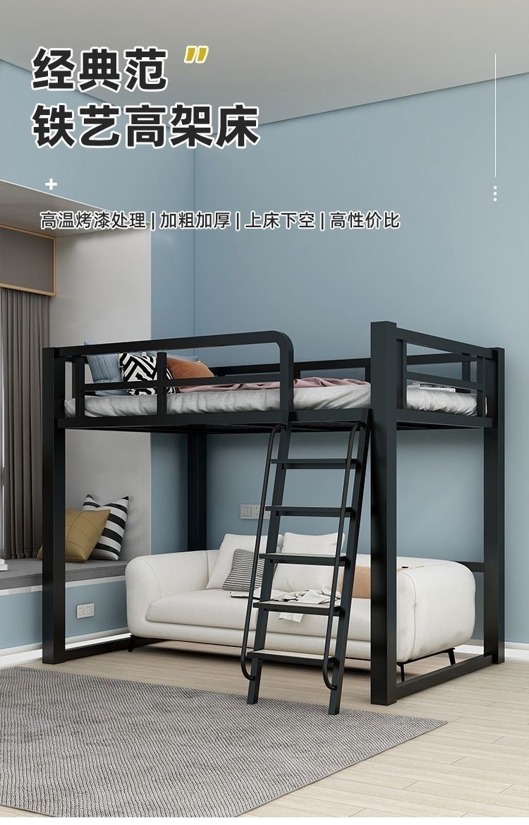 소형 아파트 기숙사 임대 주택 철제 침대 높은 침대 시트 더블 침대 아래 테이블 공간 절약형 이층 침대스토어 가기