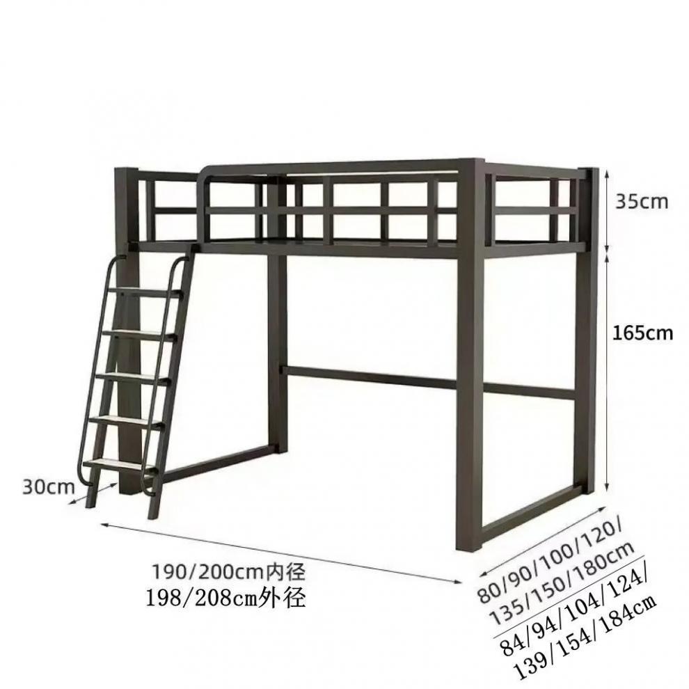 소형 아파트 기숙사 임대 주택 철제 침대 높은 침대 시트 더블 침대 아래 테이블 공간 절약형 이층 침대