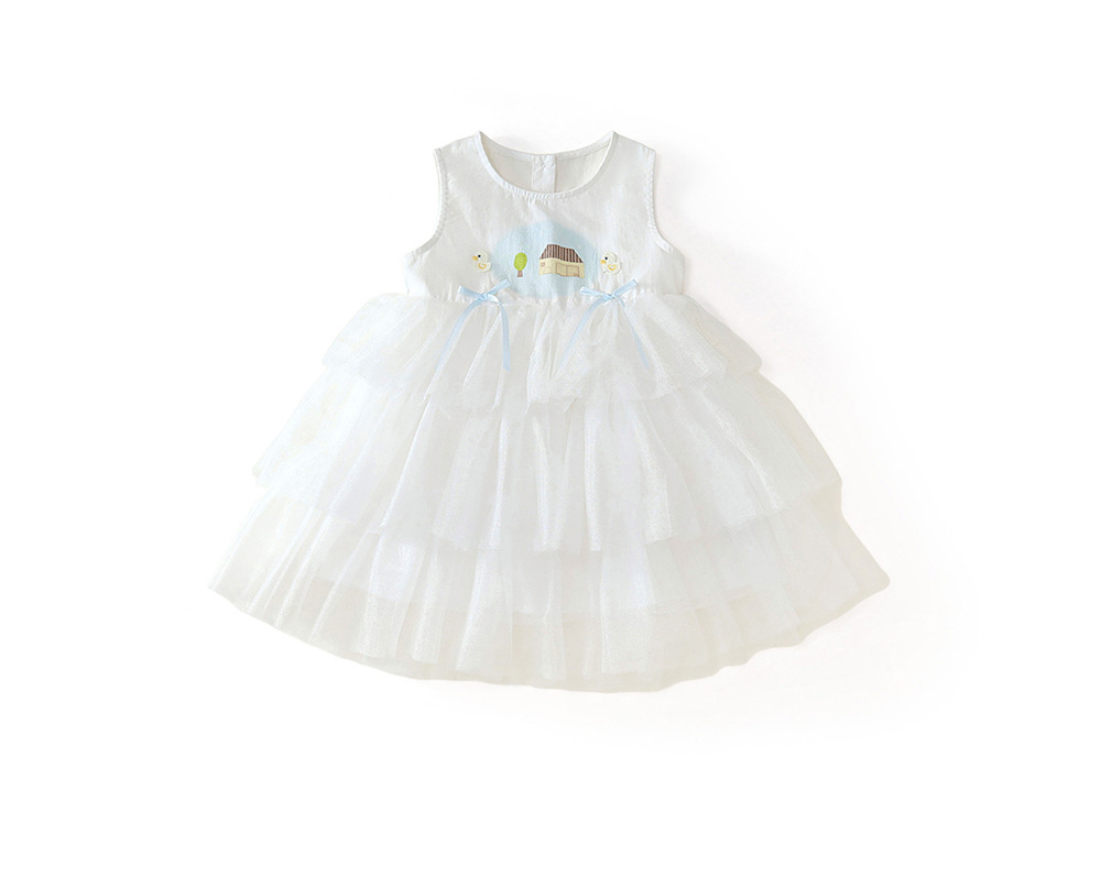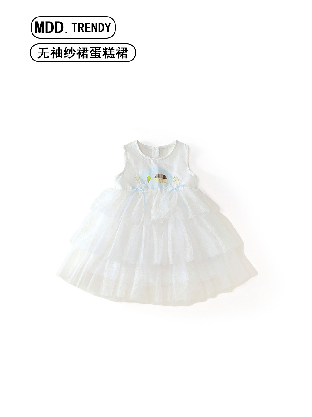 MDD 여자 드레스 2025 여름 새로운 어린이 민소매 조끼 드레스 메쉬 원사 생일 드레스 케이크 스커트