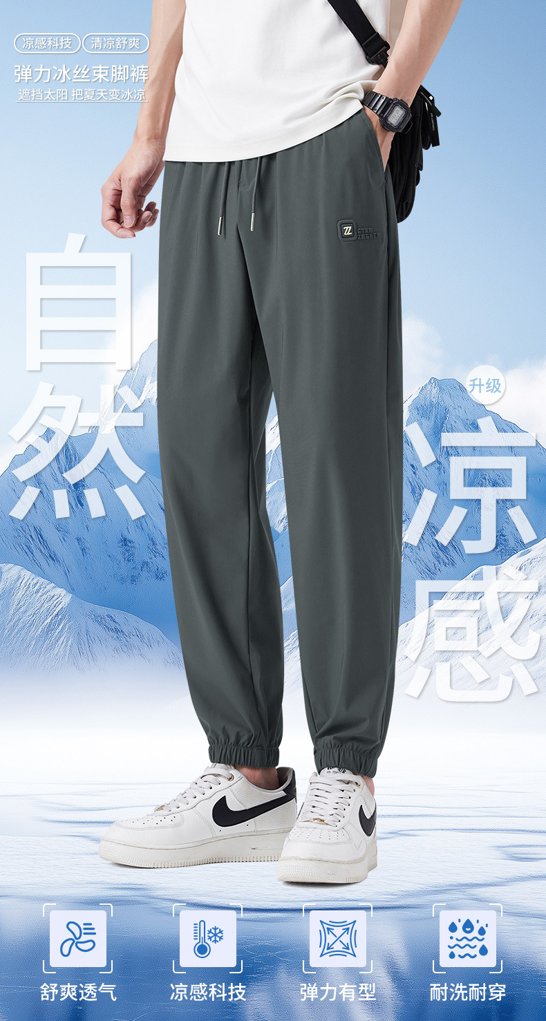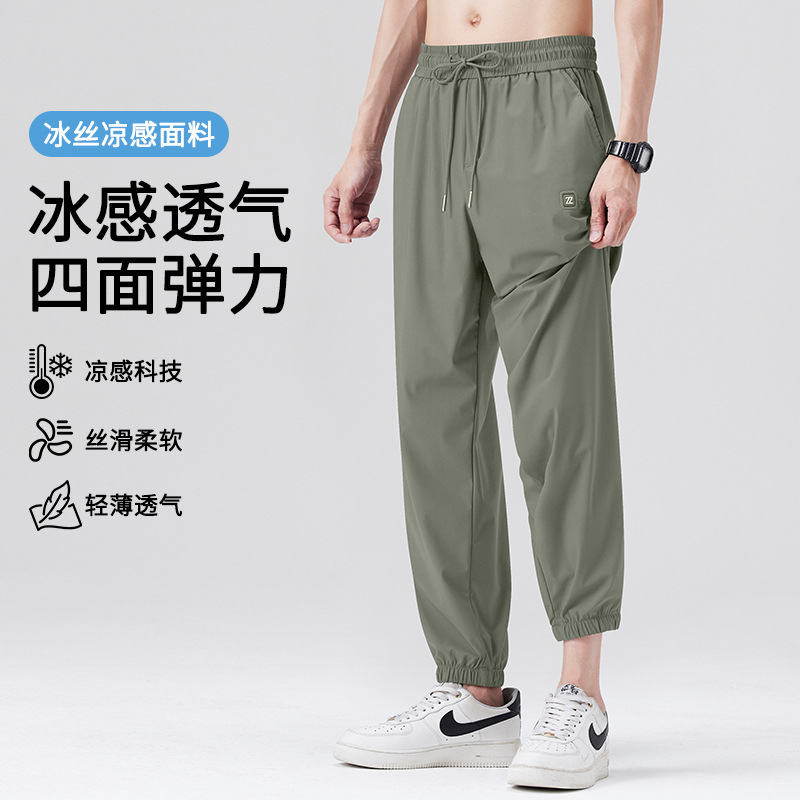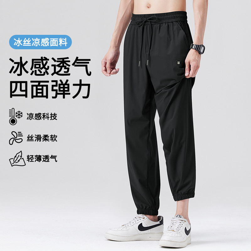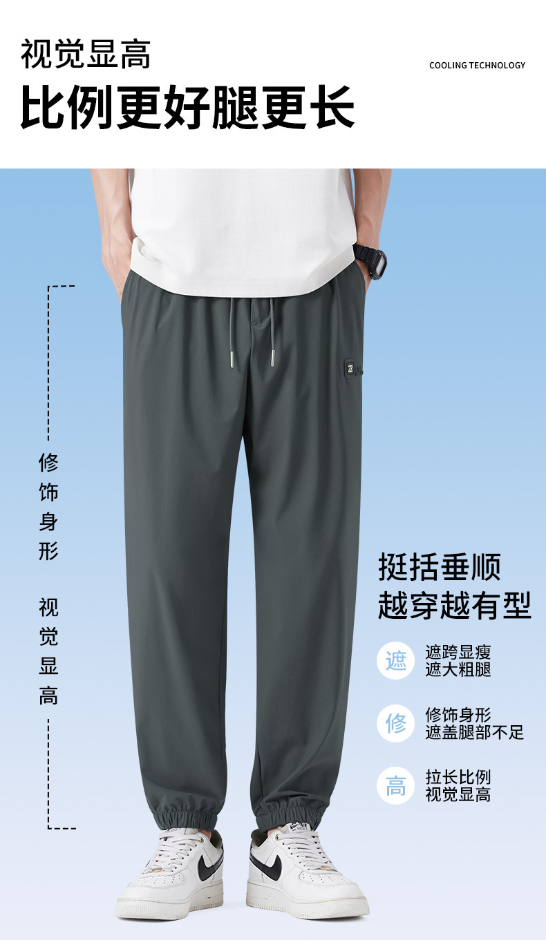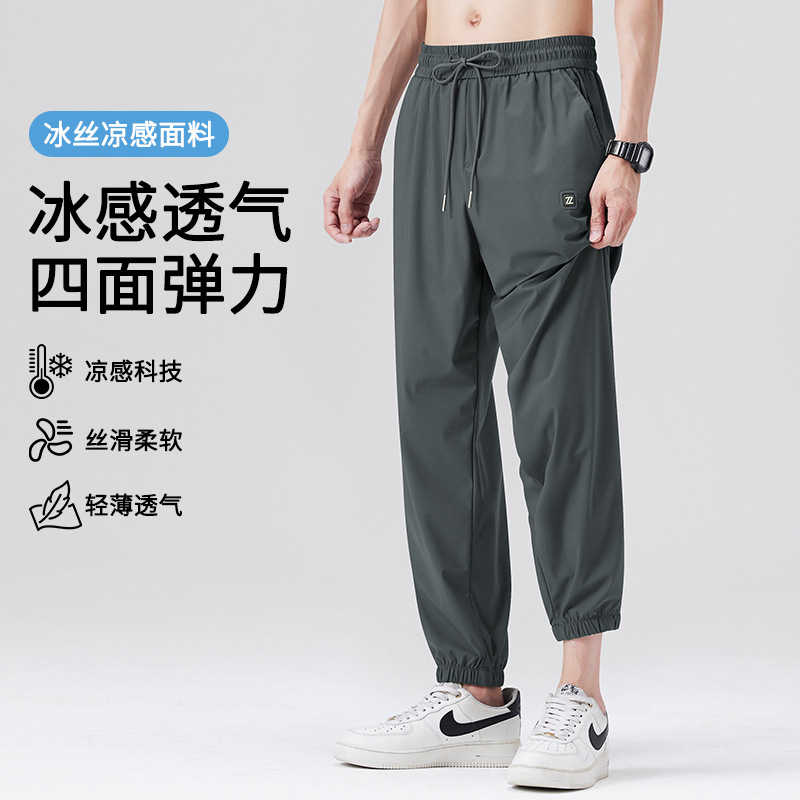 남성용 아이스 실크 캐주얼 바지, 2026년 여름 신상 스포츠 에어컨 팬츠, 드레이프한 얇은 소재의 남성용 조거 팬츠