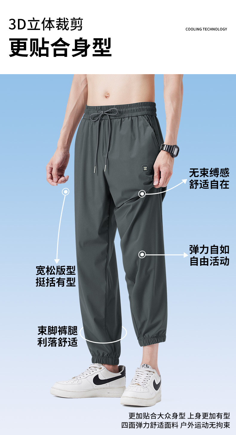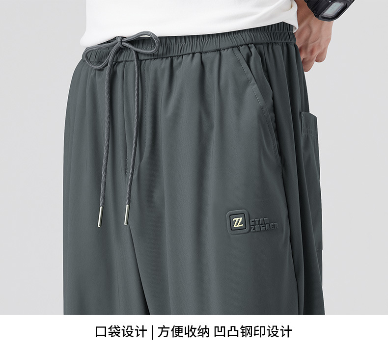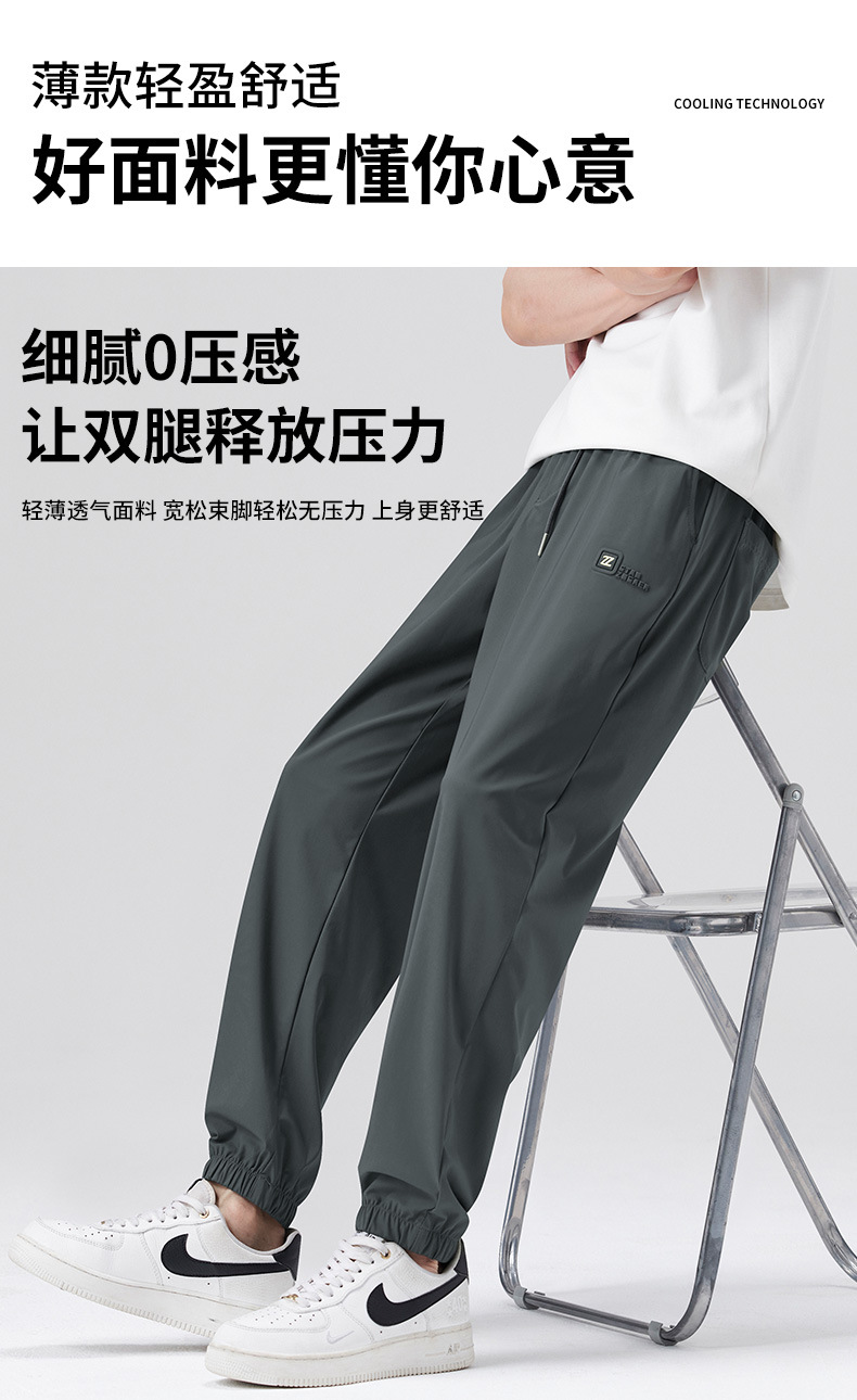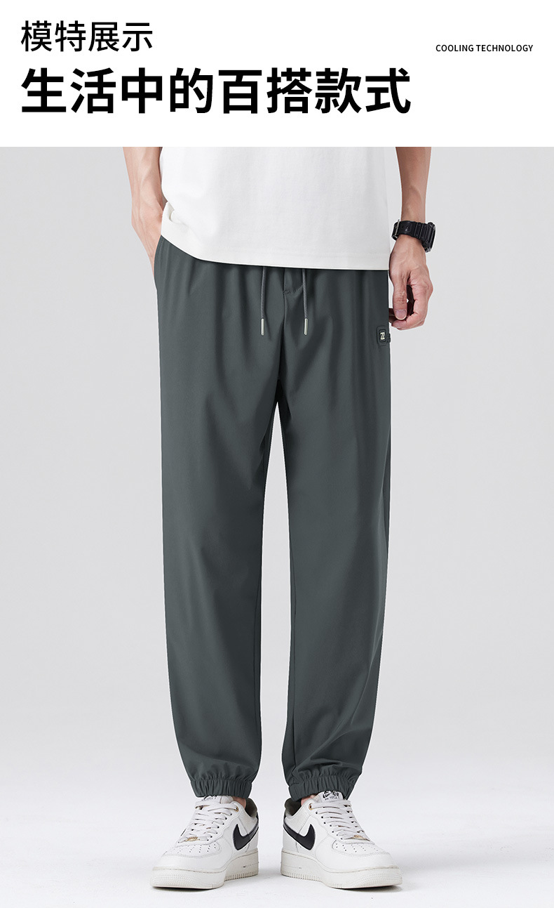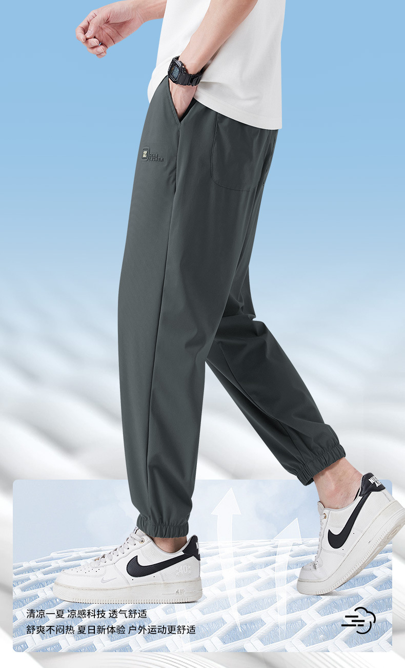 남성용 아이스 실크 캐주얼 바지, 2026년 여름 신상 스포츠 에어컨 팬츠, 드레이프한 얇은 소재의 남성용 조거 팬츠