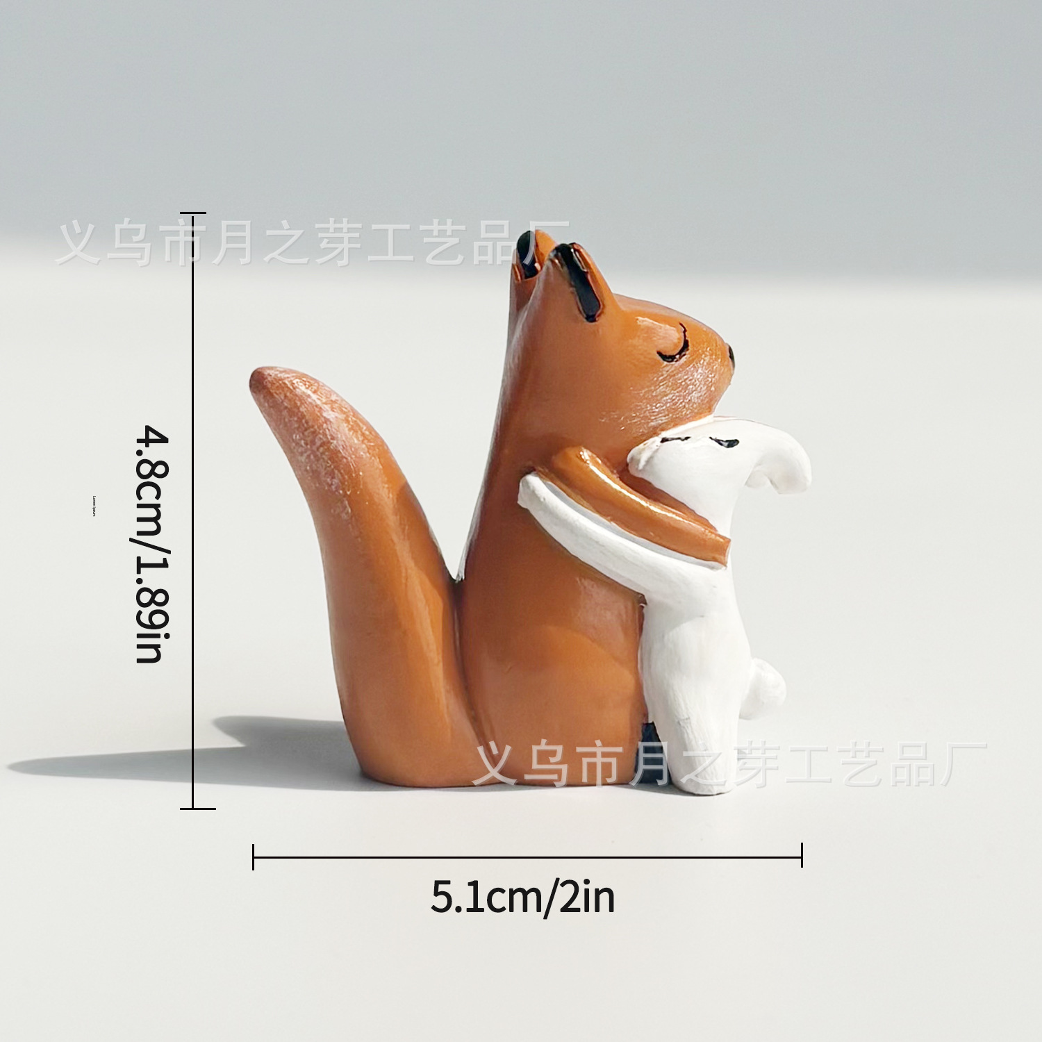 국경을 넘나드는 새로운 제품, 사랑스러운 여우와 토끼가 집을 포옹하는 만화 미니 수지 동상 장식품