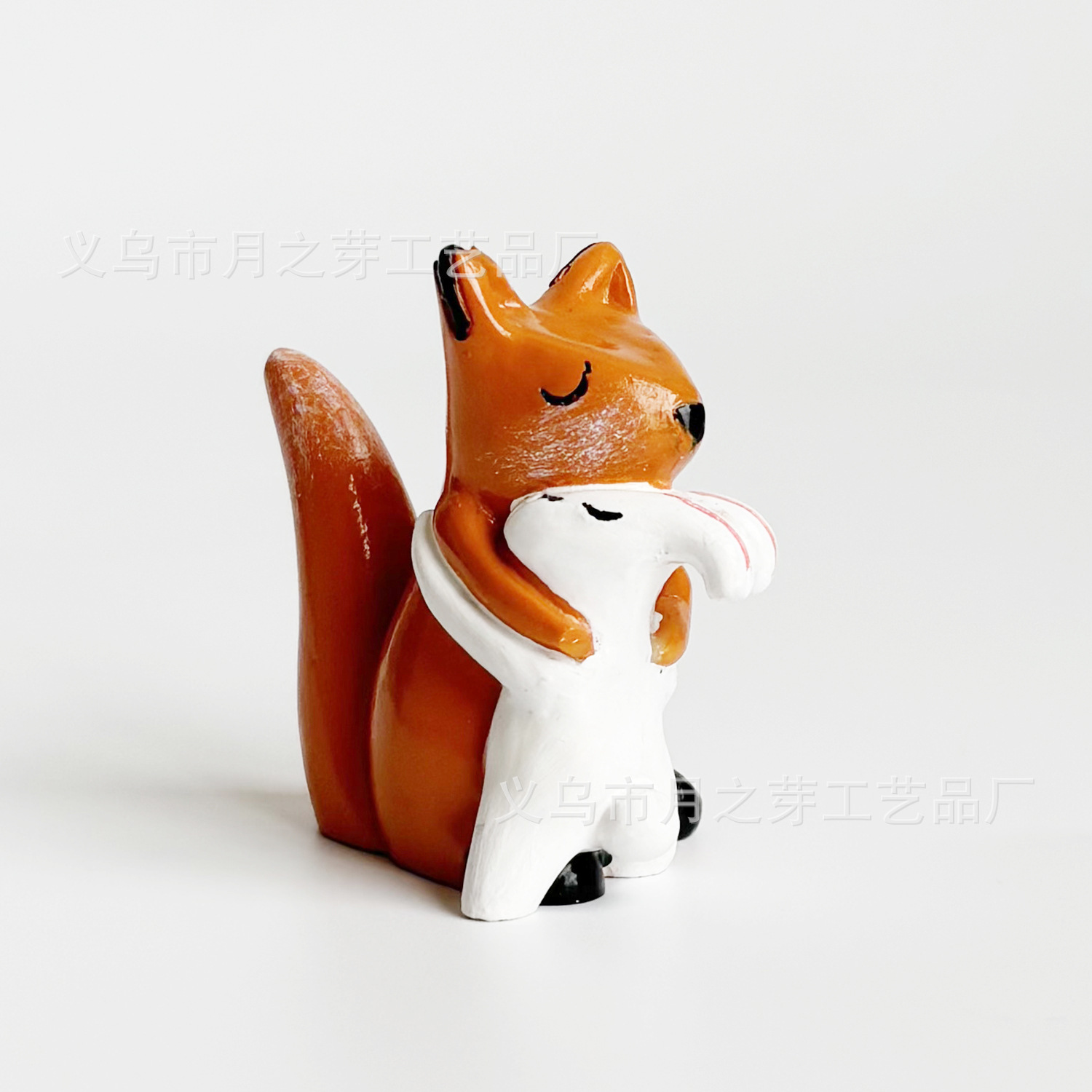 국경을 넘나드는 새로운 제품, 사랑스러운 여우와 토끼가 집을 포옹하는 만화 미니 수지 동상 장식품스토어 가기