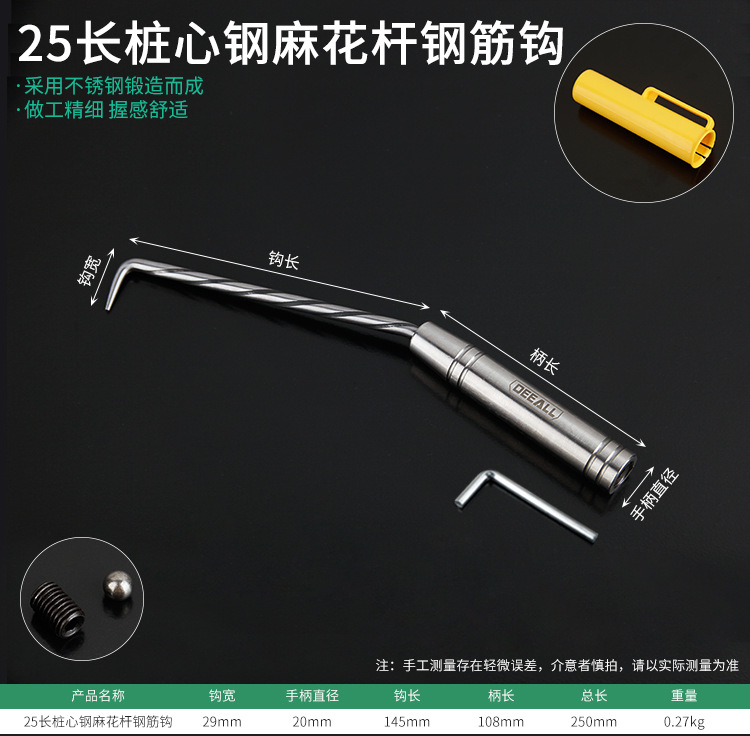 • 25개의 긴 트위스트 파일 코어 강철, 내부 육각형 및 후크 슬리브 포함