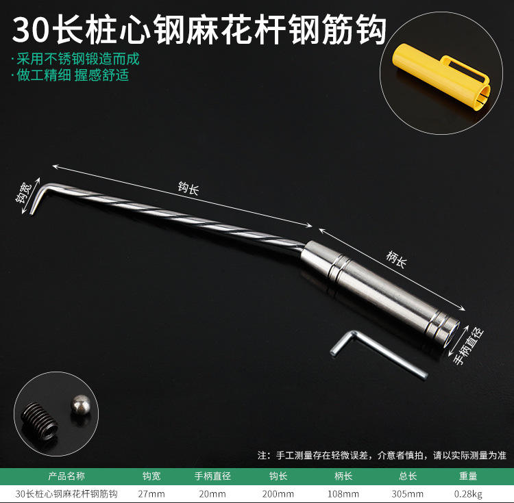 • 28개의 긴 트위스트 파일 코어 강철, 내부 육각형 및 후크 슬리브 포함