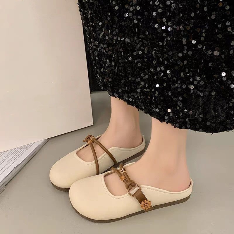 여성용 바오터우 하프 슬리퍼 여름 아우터 2025 신상 플랫 슬립온 하프 슬리퍼 소프트 솔 프렌치 샌들