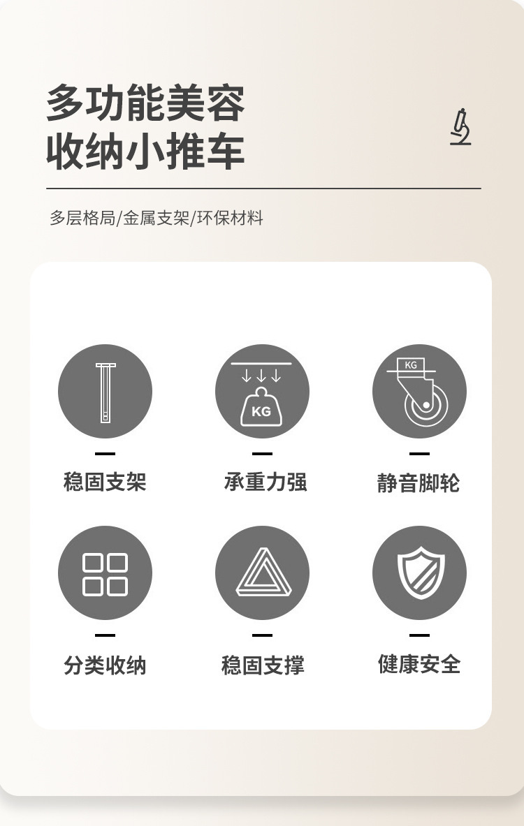 美容仪器支架底座美容院诊所台式仪器推车带滚轮可移动双层置物架