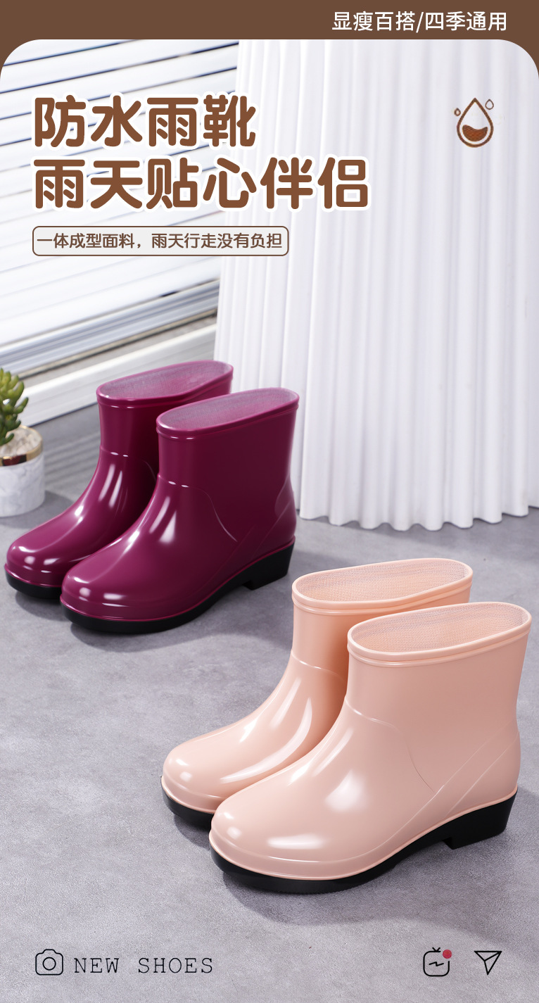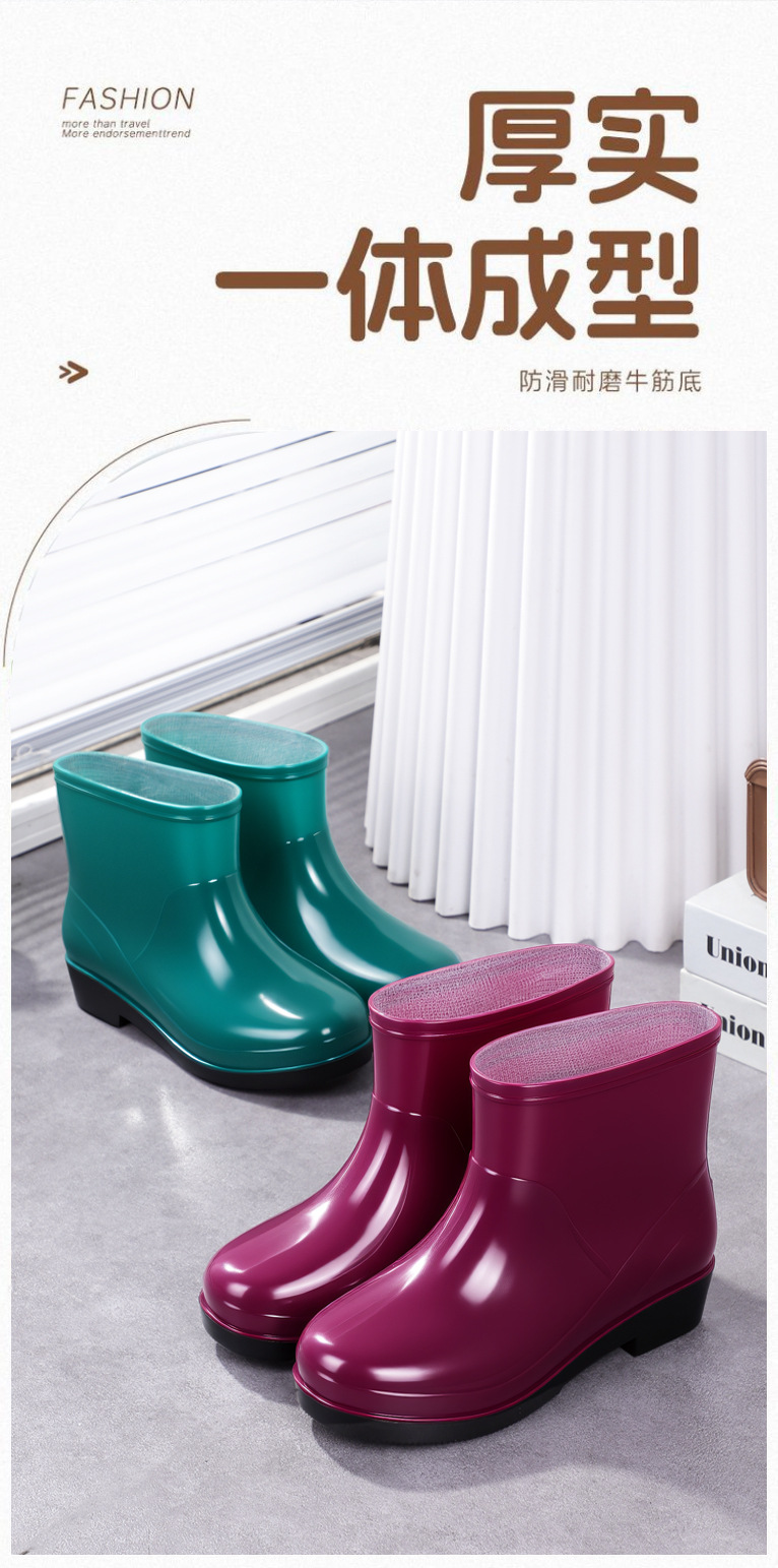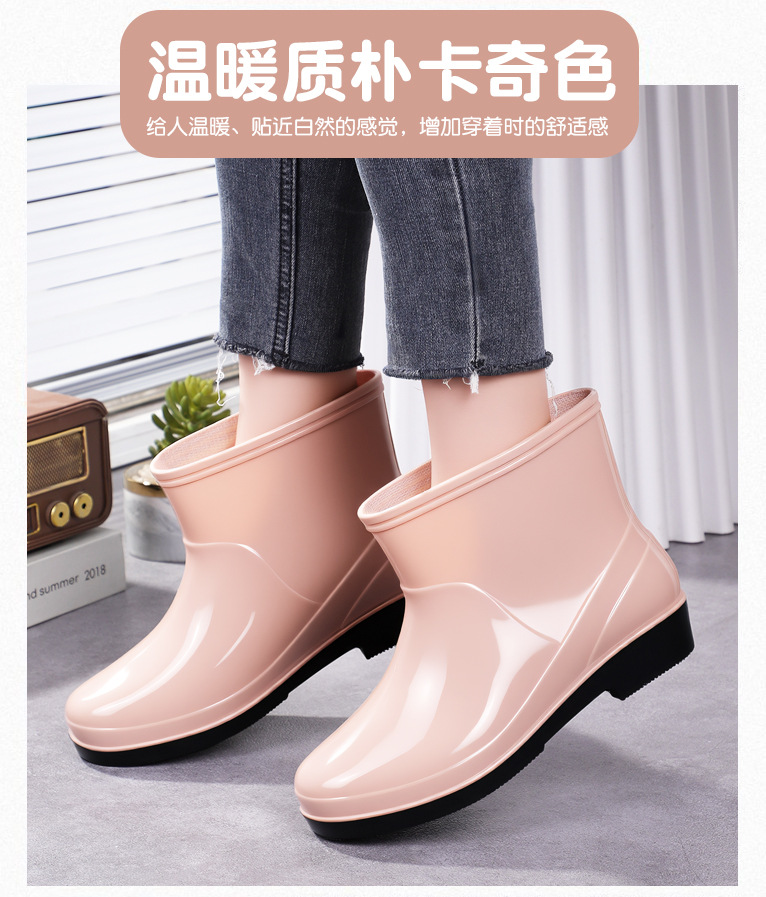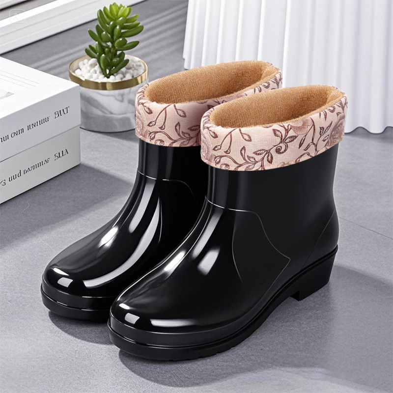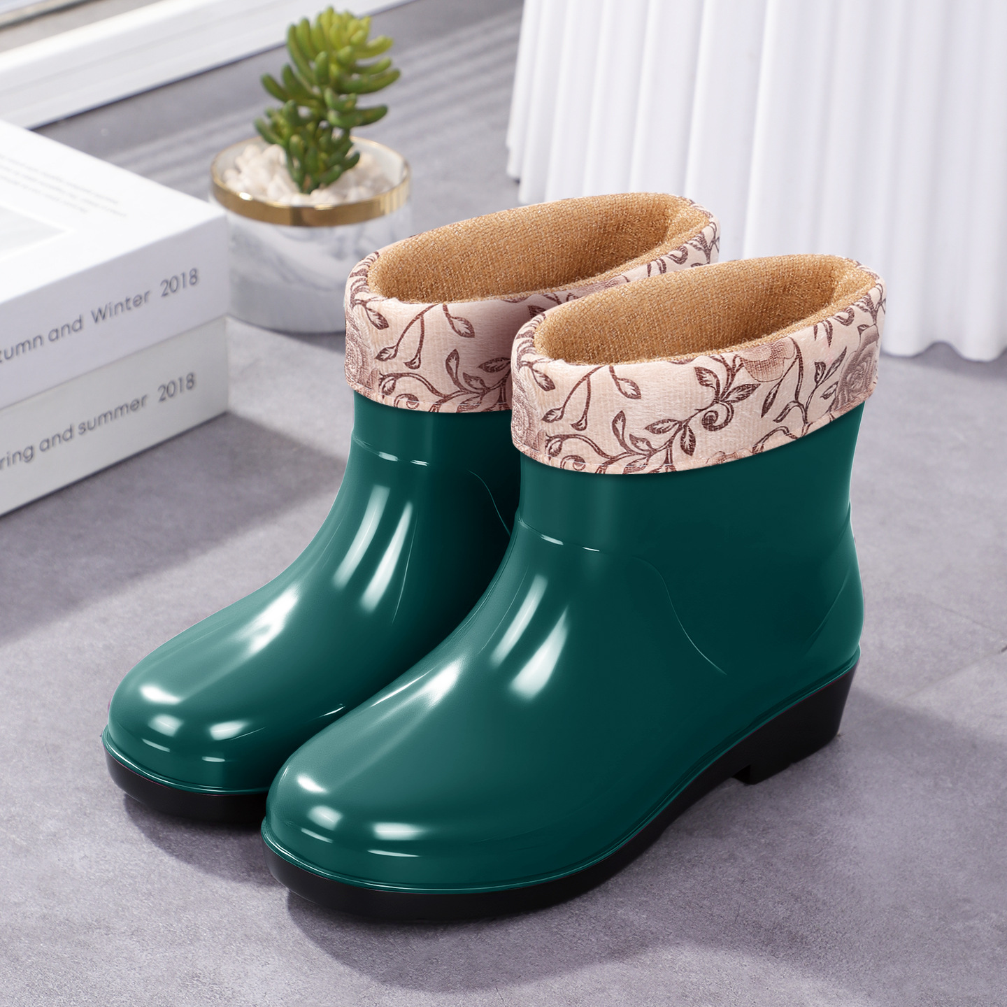 한국 스타일 패셔너블한 겉옷, 두꺼운 미끄럼 방지 방수 장화, 여성용 짧은 튜브, 여성용 면 따뜻한 주방 작업 장화스토어 가기