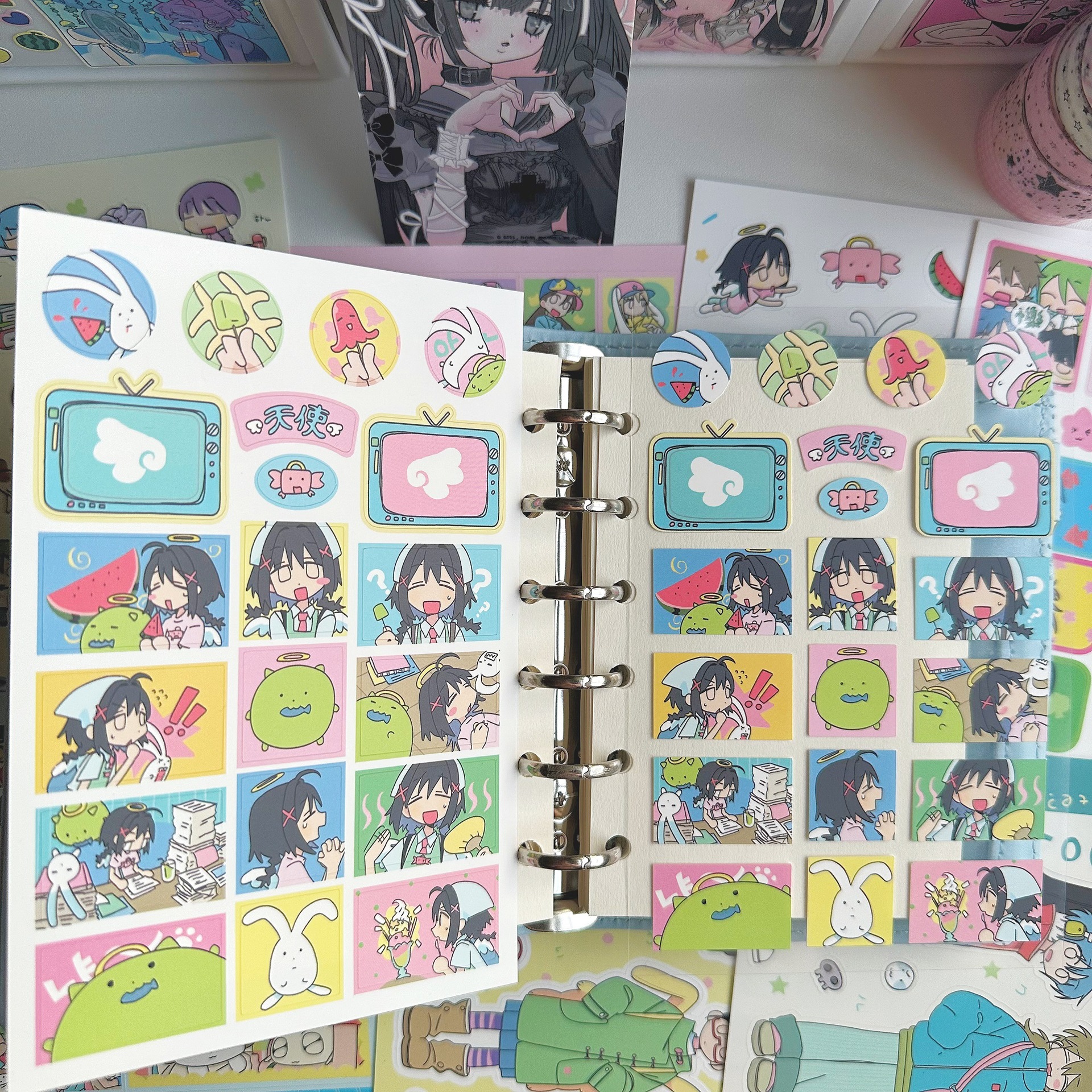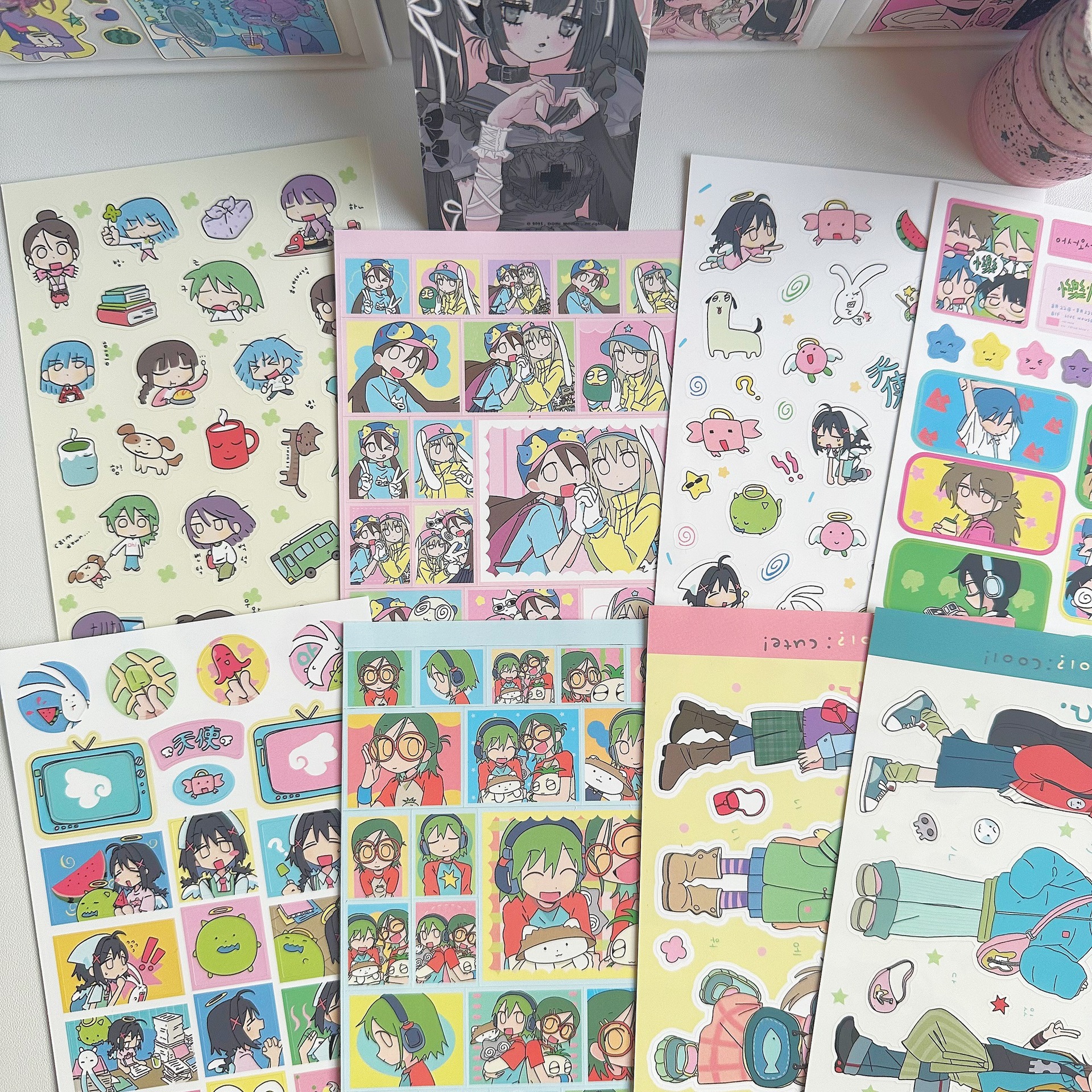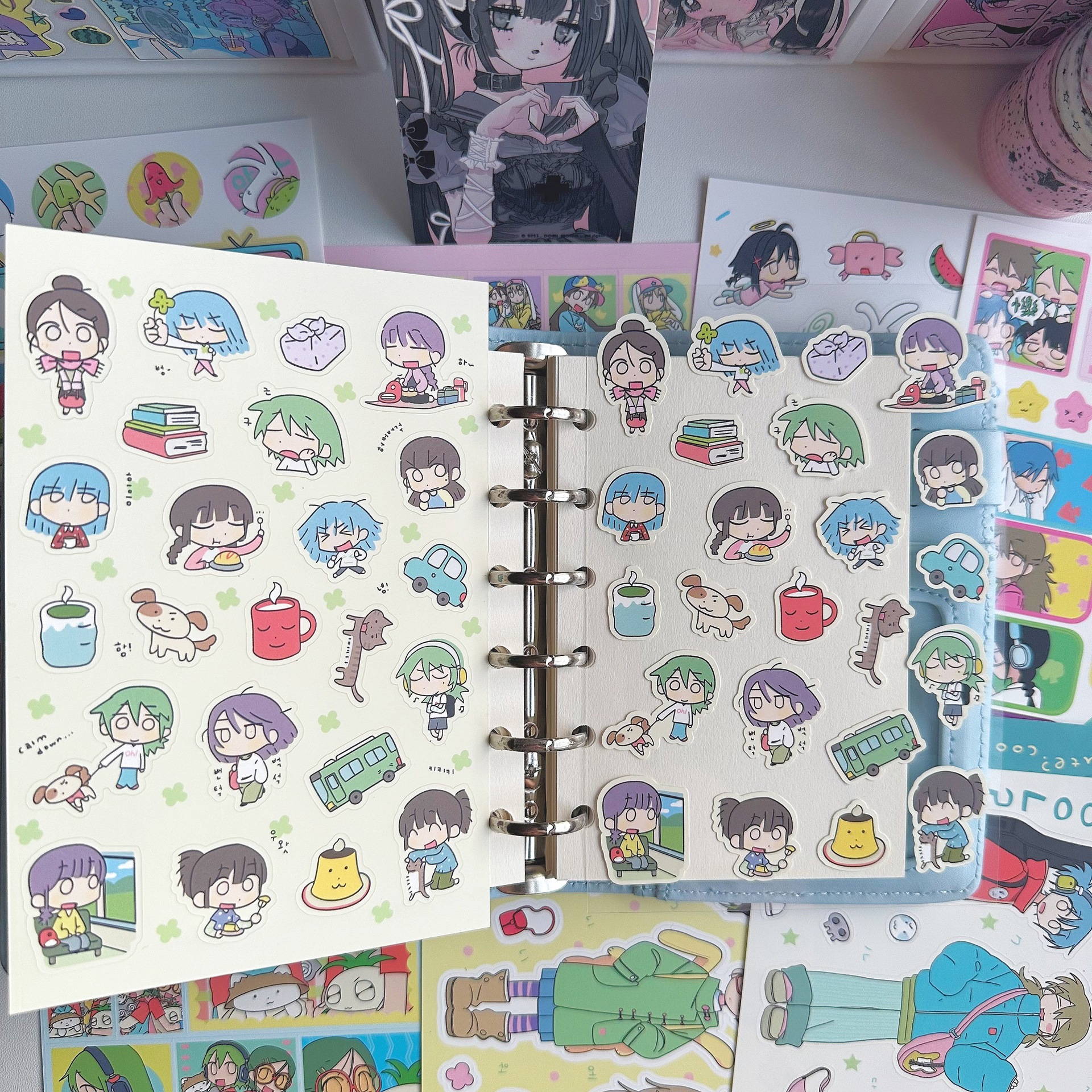 귀여운 소녀 스티커, 인기 있는 한국 만화 캐릭터 스티커, 인스타그램 스타일 스티커, 캐릭터 수첩 스티커
