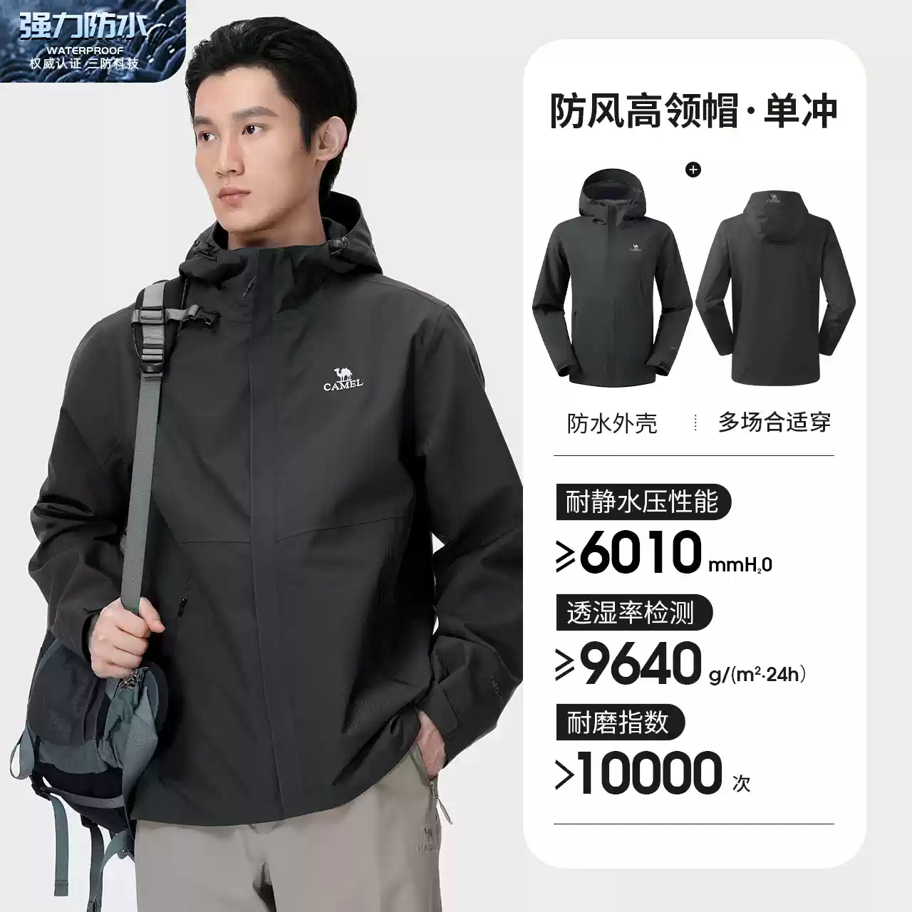 여성용 카멜 아웃도어 재킷, 25 봄 여름 신상 캐주얼 다용도 방풍 방수 삼중 방수 재킷, 남성용 도매스토어 가기