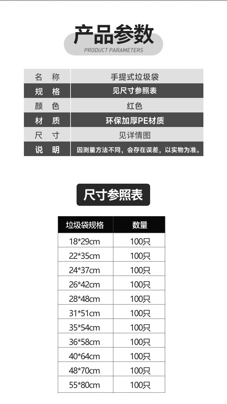 VLEN 호텔 상업용 레드 조끼 휴대용 쓰레기 봉투 [48*70cm*100개] ZTT0434스토어 가기