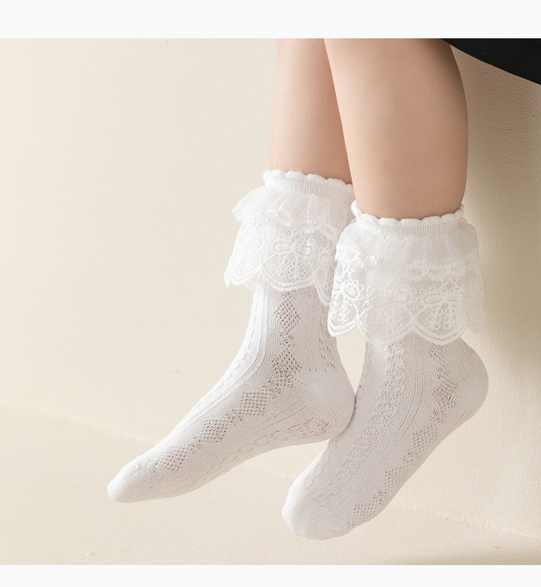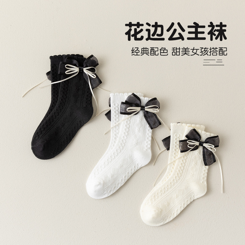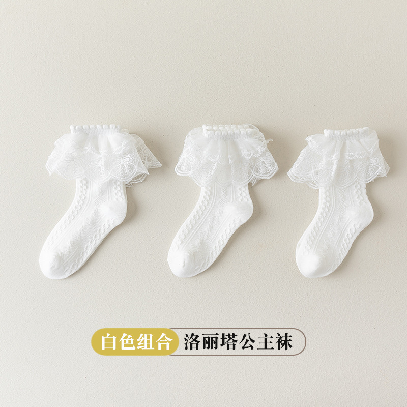 여자 레이스 공주 양말 흰색 양말 봄과 가을 어린이 단색 여자 가을, 겨울 로리타 중간 튜브면 양말