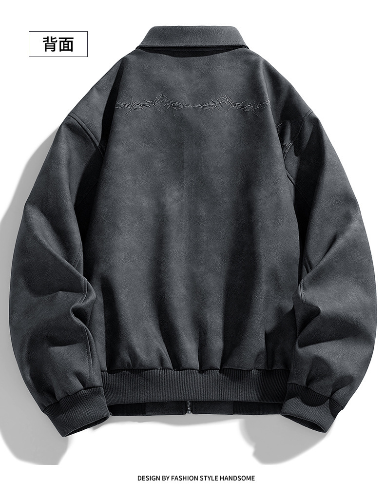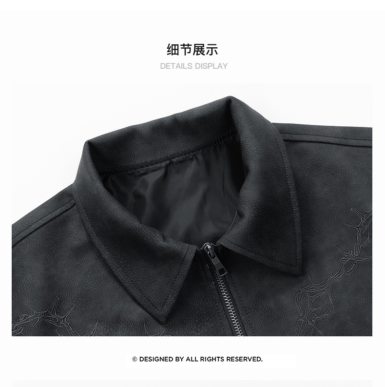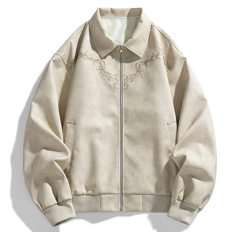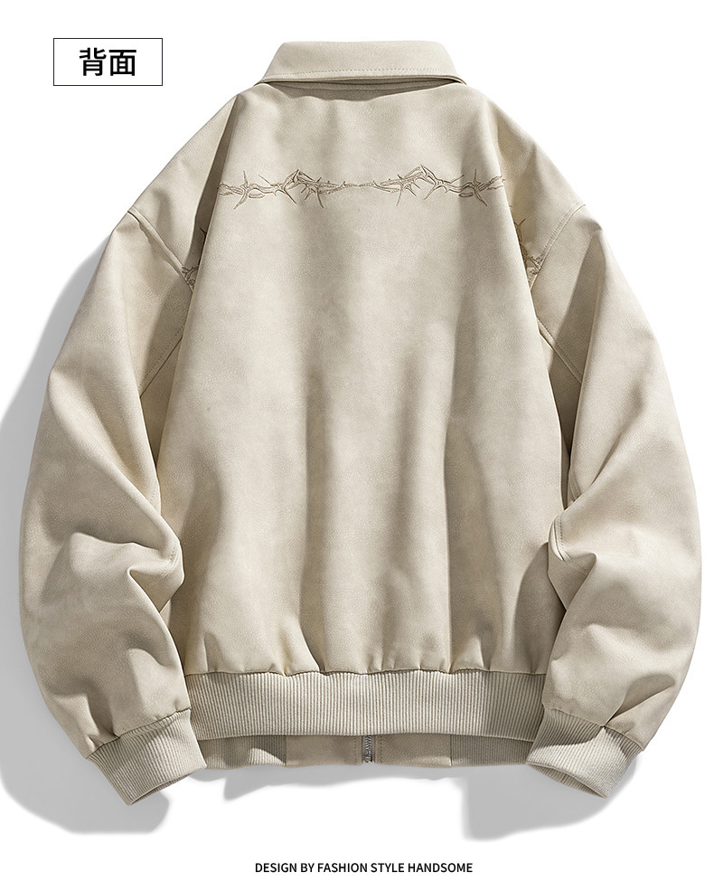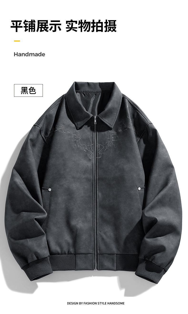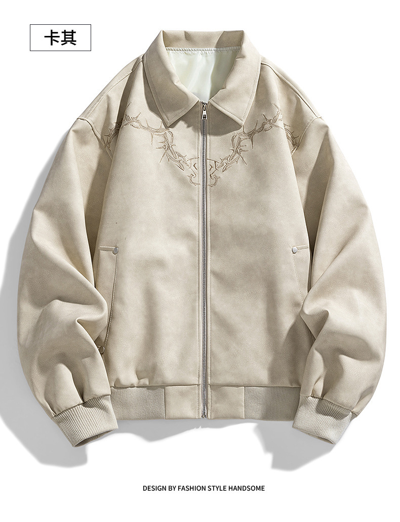 라펠 루즈 가죽 자켓 자수 2024 오토바이 가죽 자켓 남자 PU 대외 무역 복고풍 향수 새로운 거리 가죽