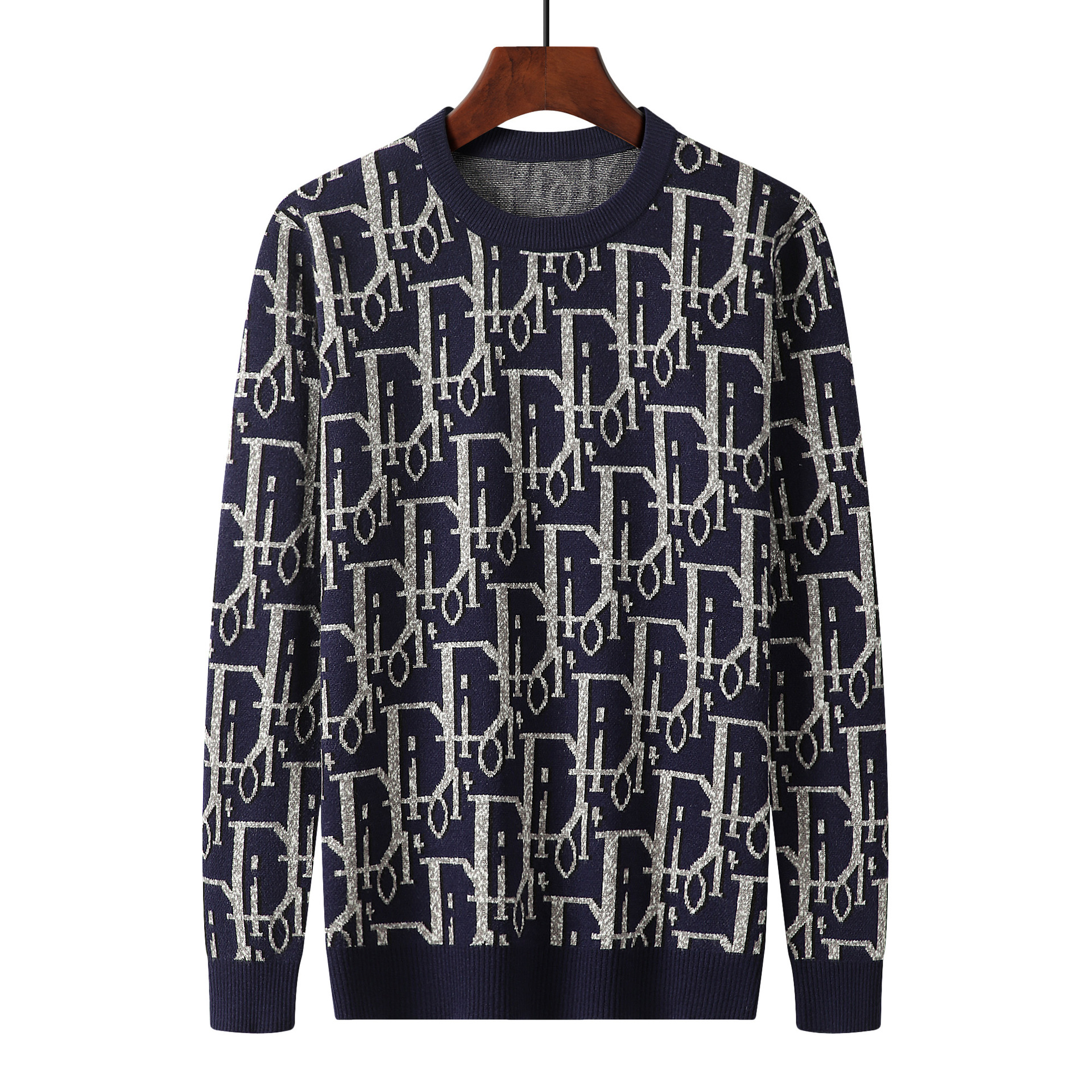 Djia Dijia 클래식 레터 바텀 셔츠 남성용 스웨터 남성용 라운드 넥 패션 비즈니스 캐주얼 라이트 럭셔리 빅 네임 남성용