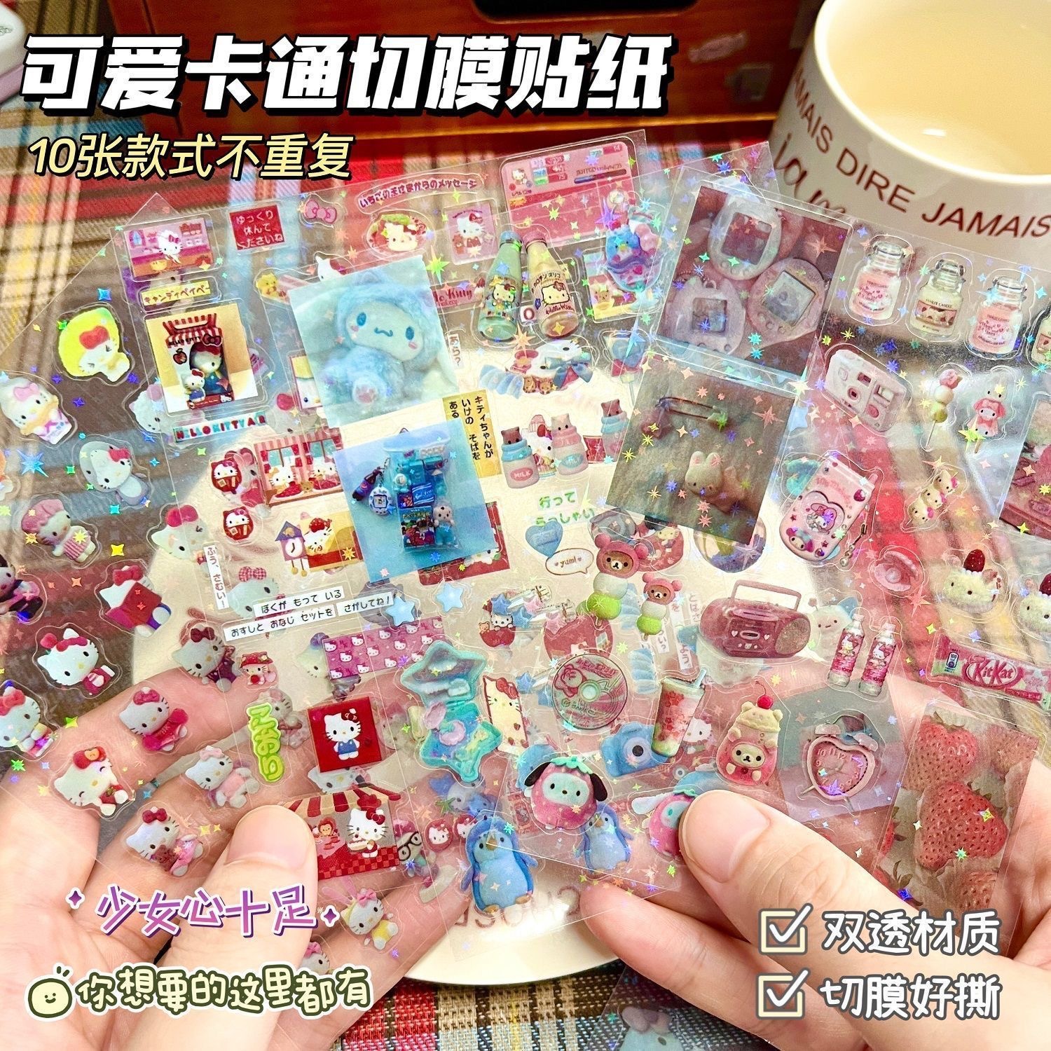 귀엽고 멋진 레이저 고대 이중 투명 스타 컷 필름 소녀 하트 소재 스티커 만화 핸드북 장식 방수