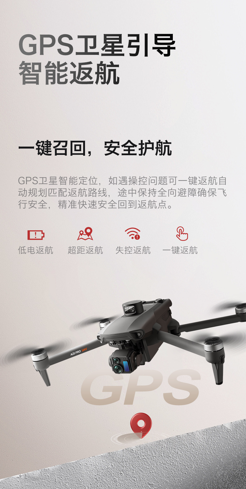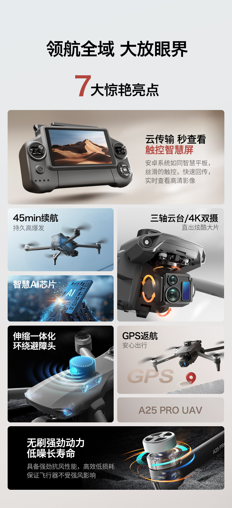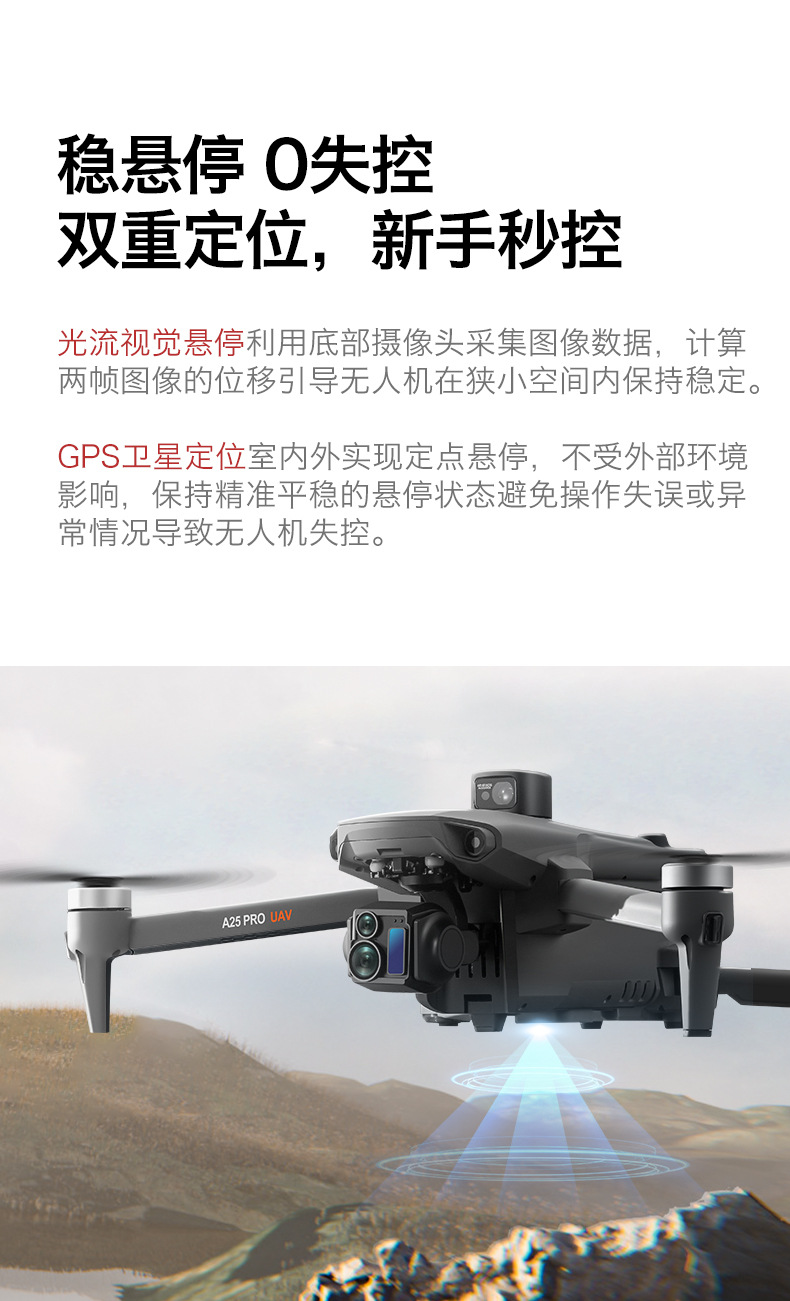 장애물 회피 기능을 갖춘 국경 간 A25 PRO 고화질 항공 사진 드론 5.5inch 터치 스크린 브러시리스 3축 손떨림 방지 짐벌 항공기스토어 가기