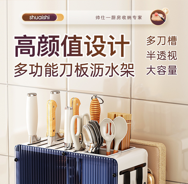 냄비뚜껑과 젓가락을 보관할 수 있는 가정용 다기능 도마칼 일체형 수납함 주방칼걸이 도마수납선반스토어 가기