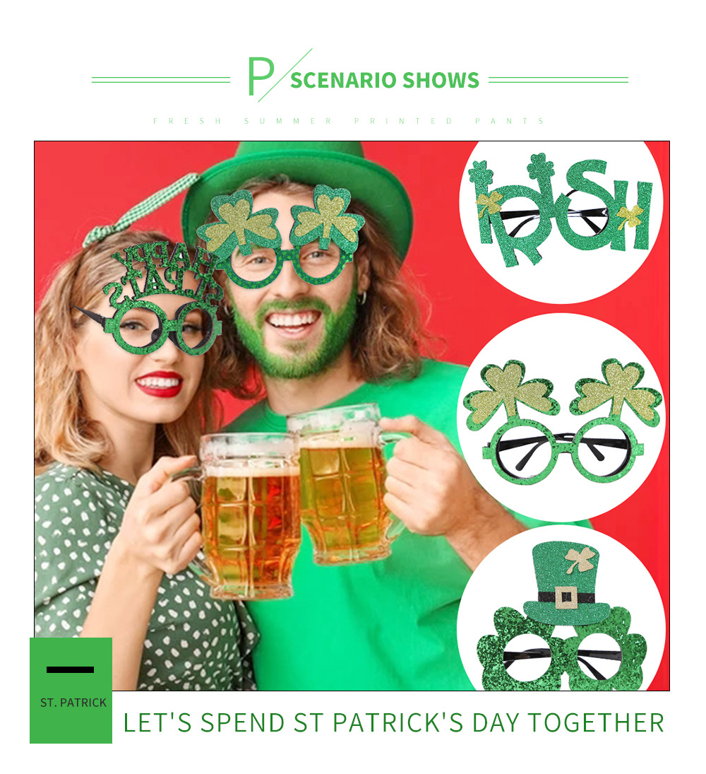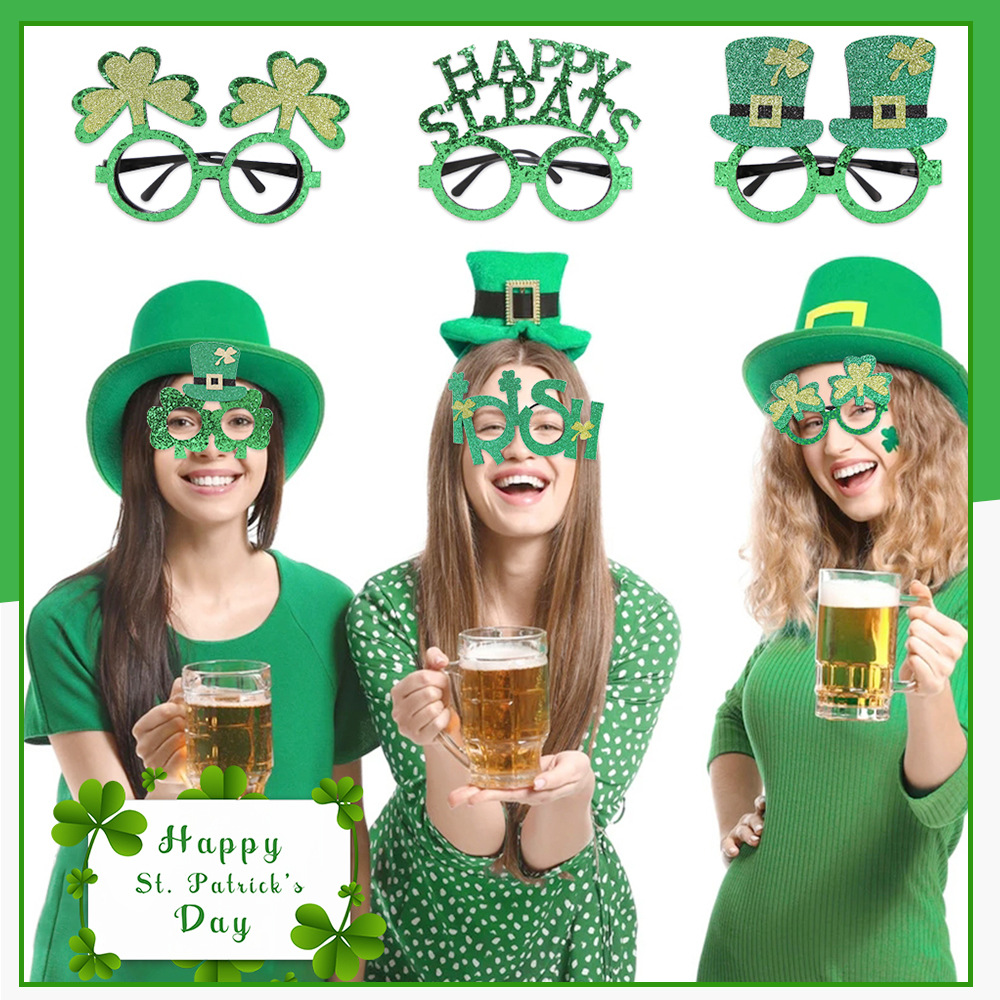 아일랜드 축제 안경 어린이 사진 소품 세인트 패트릭 파티 장식 안경 녹색 모자 클로버스토어 가기