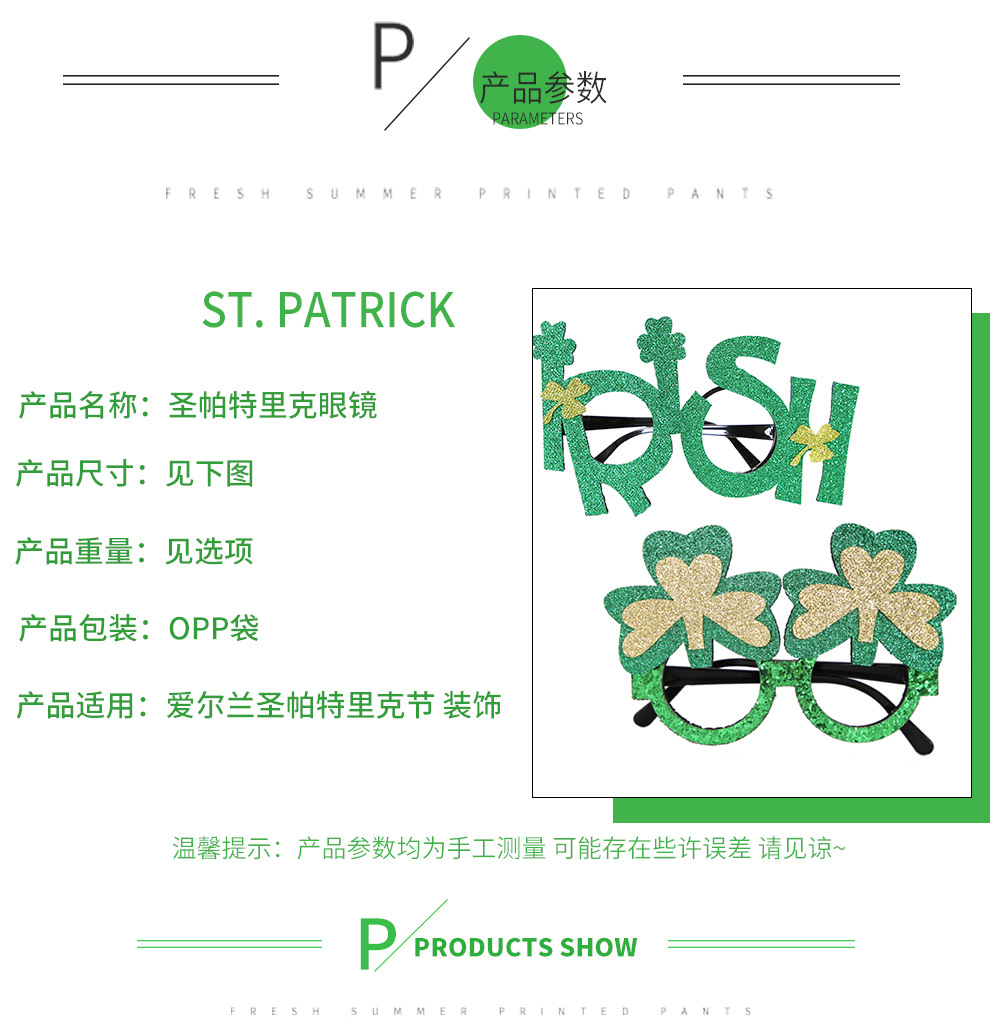 아일랜드 축제 안경 어린이 사진 소품 세인트 패트릭 파티 장식 안경 녹색 모자 클로버